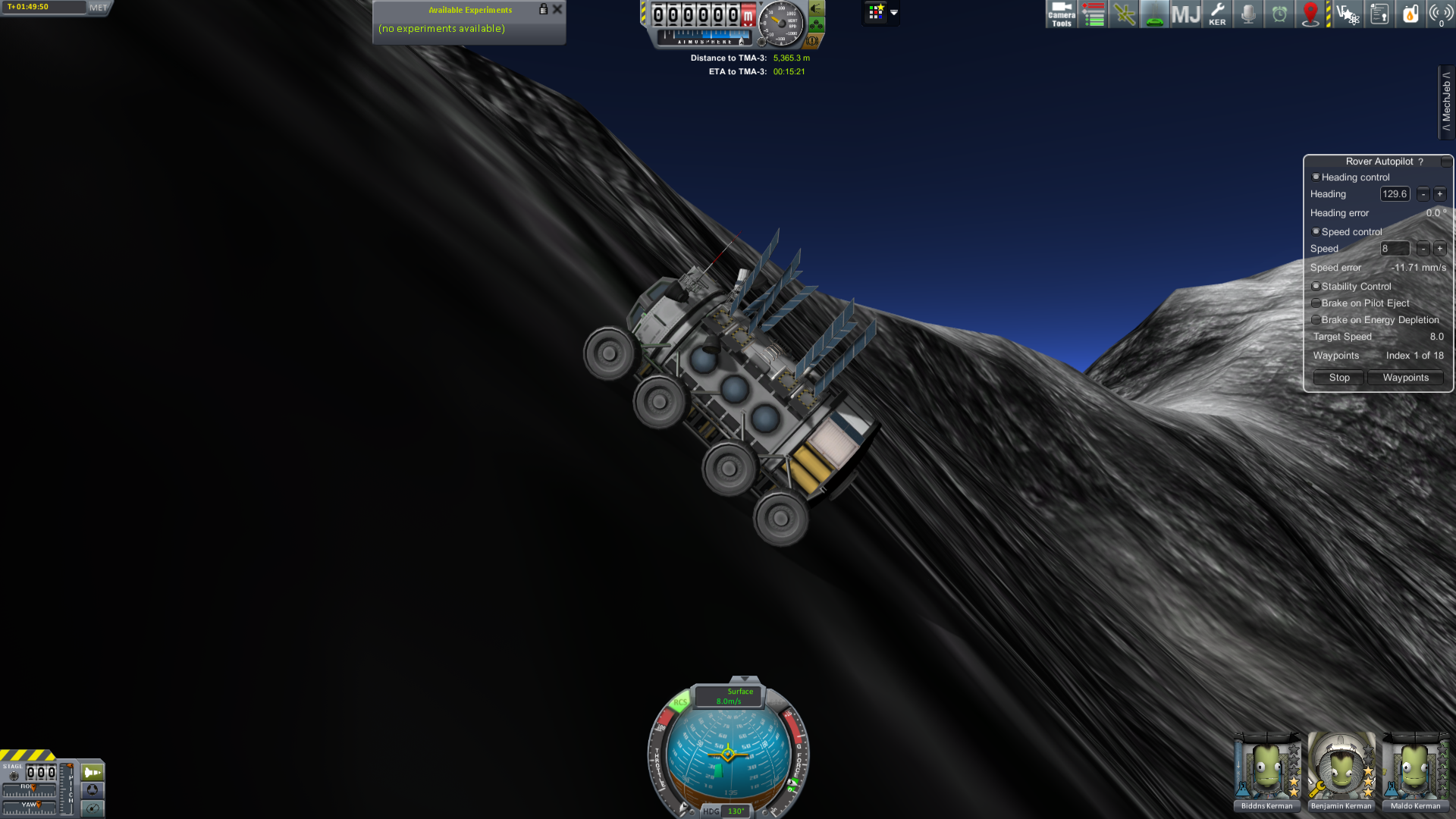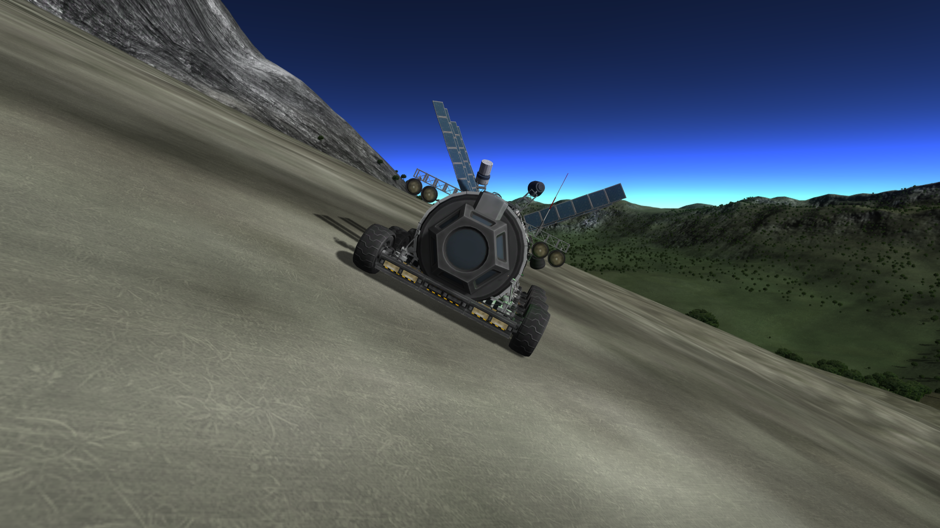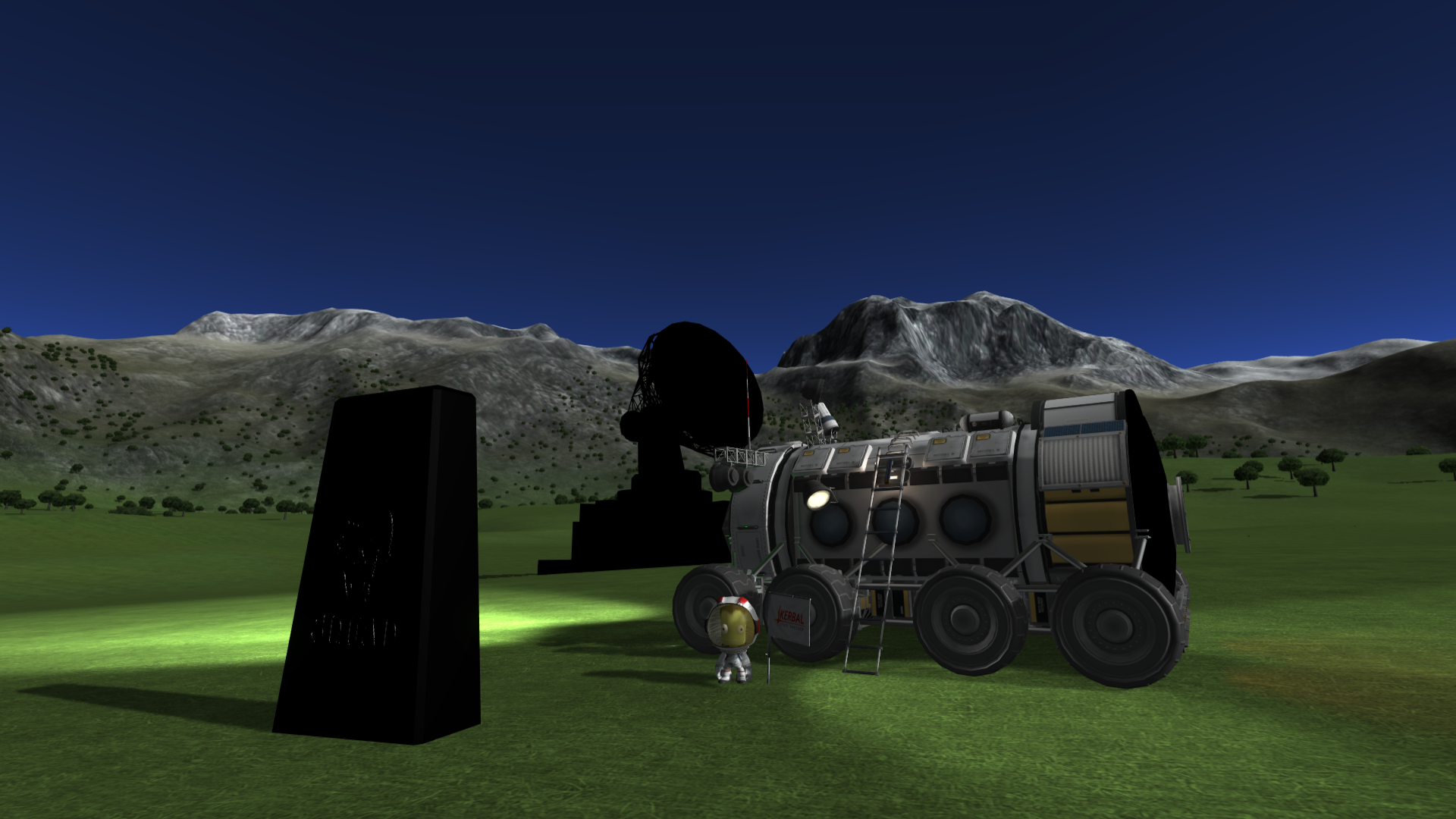 • Ich wollt hier mal meinen Science Bus vorsellen. Diese Standard-Version ist rein aus "stock parts" aufgebaut und ermöglicht 2 Wissenschaftlern und einem Ingenieur(!) über die Himmelskörper zu fahren um alle bodengebundenen wissenschaftlichen Experimente zu machen. Der Ingenieur sollte dabei sein und mindestens 3 Sterne haben um die doch recht fragilen Räder immer wieder reparieren zu können. Wenn man es aber vorsichtig angeht, ist es ein solides Fahrzeug mit tiefem Schwerpunkt um Steigungen und Neigungen von bis zu 50° befahren zu können ohne umzukippen. Die große Batteriekapazität lässt das Fahrzeug ohne Treibstoffverbrauch lange fahren und forschen, damit kann man auch eine Nacht überstehen bis die Solarzellen wieder Licht tanken können. Dennoch ist es durch einen im Fahrzeugboden liegenden 5 t Tank für den Treibstoff für die 8 Brennstoffzellen sehr lange sonnenunabhängig. Insgesamt etwas schwerer geworden (19,5t vollgetankt) aber die kerbalschen Wissenschaftler mögen es sehr. (Einige Dinge sind reine Design-Elemente!)
