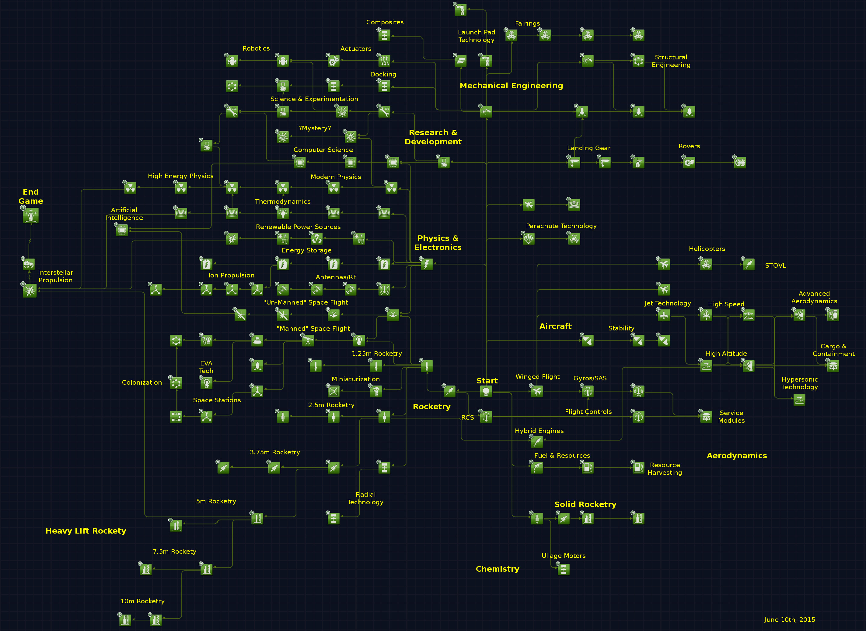 Du meinst bestimmt Kerbal Research & Developement. Allerdings ist das kein Techtree. Da kann man nur überschüssige Science in Verbesserungen investieren.