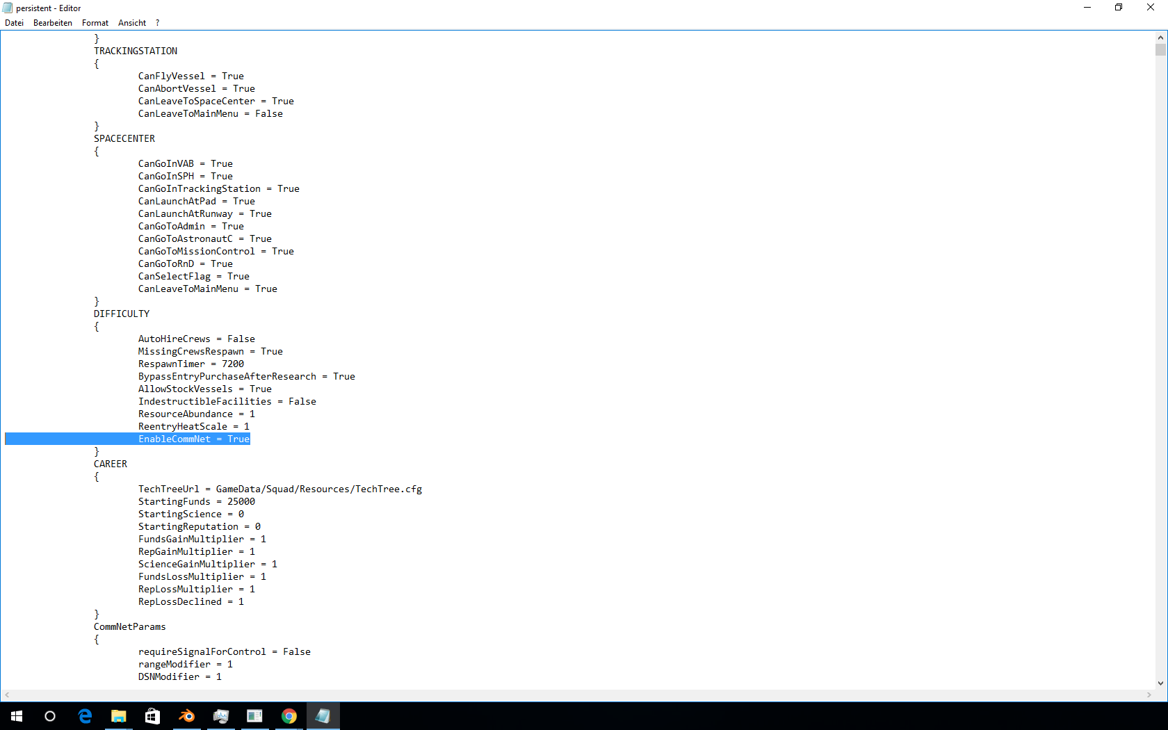 @Schafsviech Versuch mal folgendes: Öffne [KSP Installationsverzeichnis/saves/dein Spielstand/persistent.sfs] mit den Editor und suche die Zeile "EnableCommNet" und änder den Wert auf "True". Ich hab jetzt nicht ausprobiert ob das funktioniert und übernehme keine Garantie ![]()