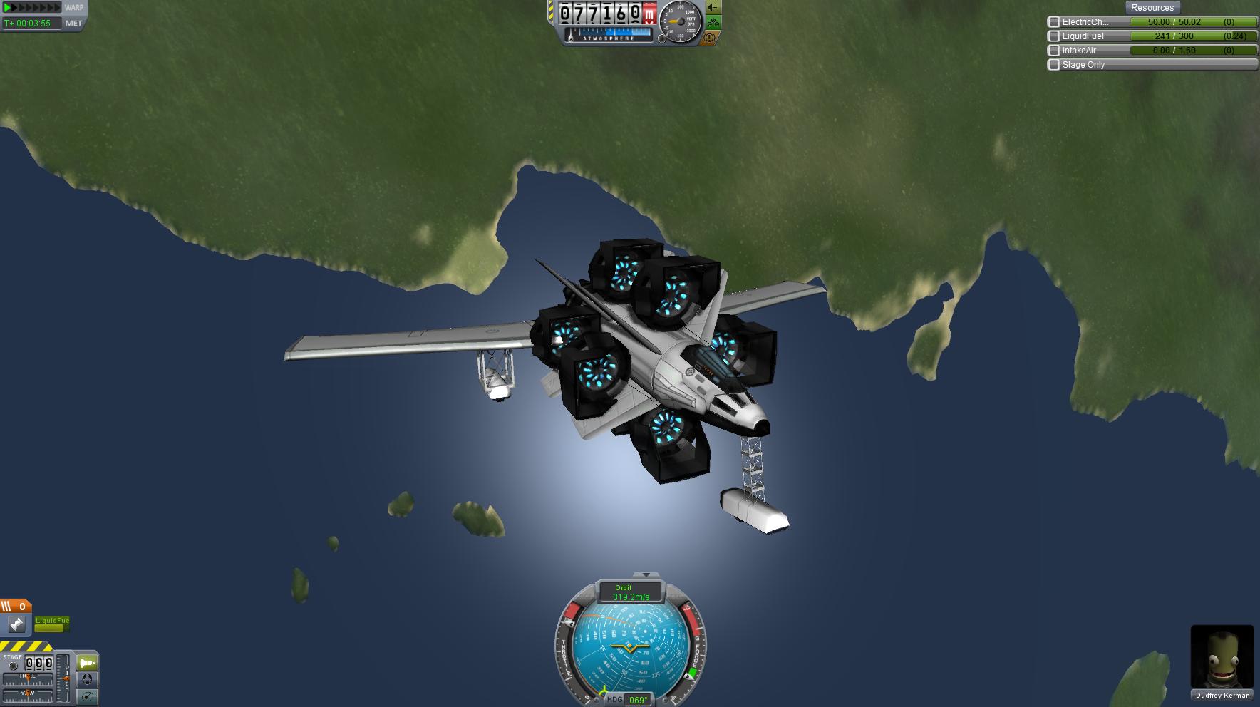 | Sternenjäger | Baue einen Jet (Flügel, Jettriebwerke), transportiere ihn nach Laythe, lass ihn landen und fliege ihn wieder zurück nach Kerbin. (Docking erlaubt) | 80.000 | - |