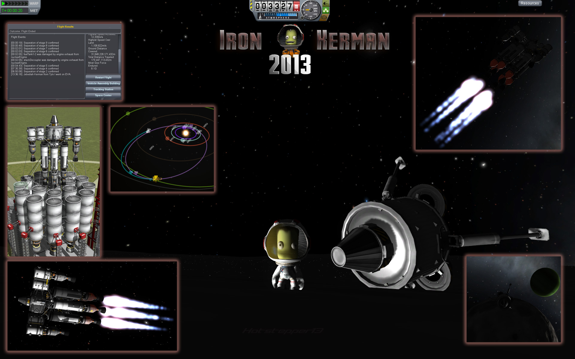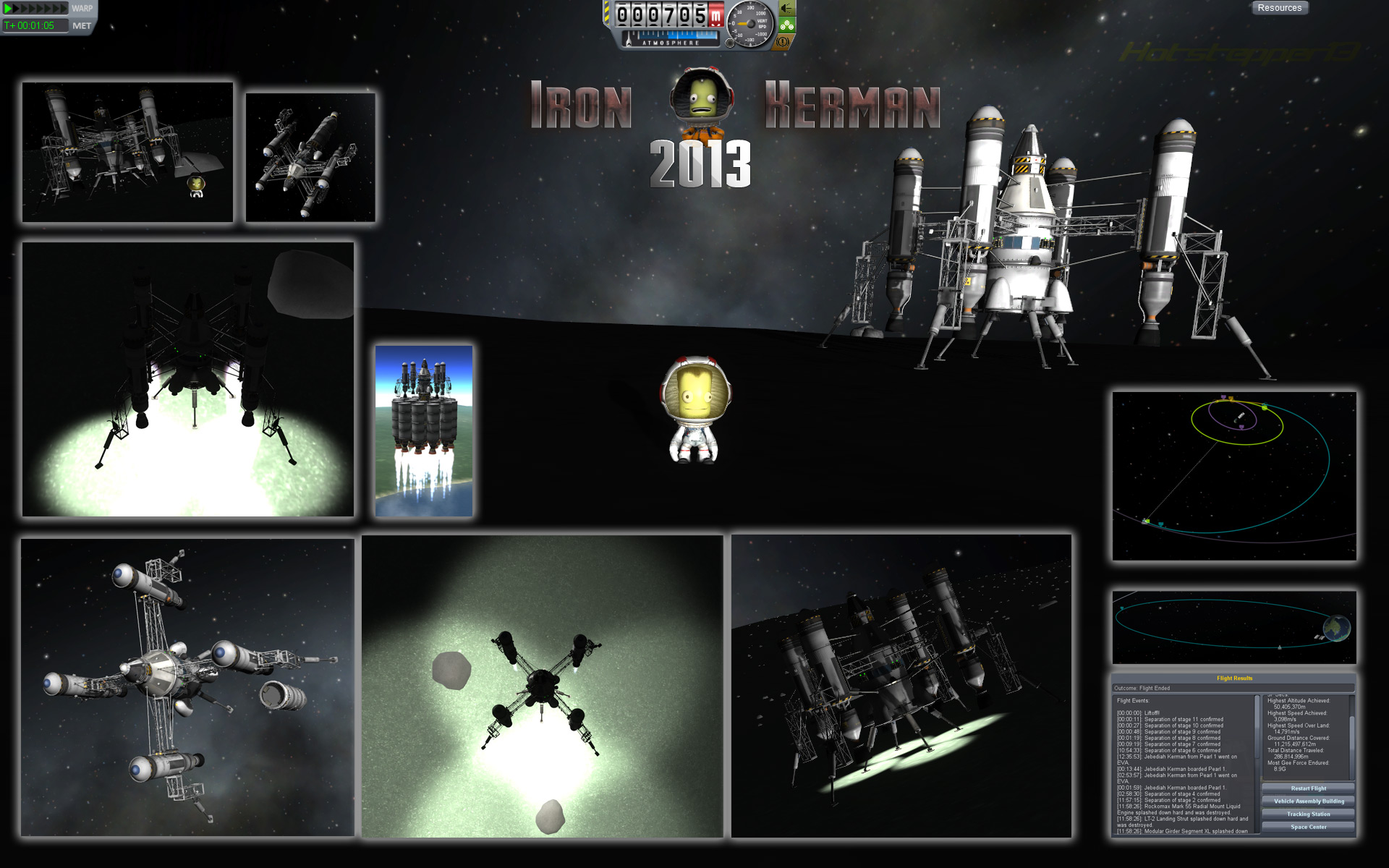 Datt war ein Ritt. Zuerst habe ich eine Rakete mit 4 Hitchhiker Modulen in den Orbit gebracht. Dabei habe ich natürlich nicht daran gedacht das ich ja auch schon ein Kommandopod mit 3 Leuten drauf setzen und mir so einen Flug sparen kann. *narf*
