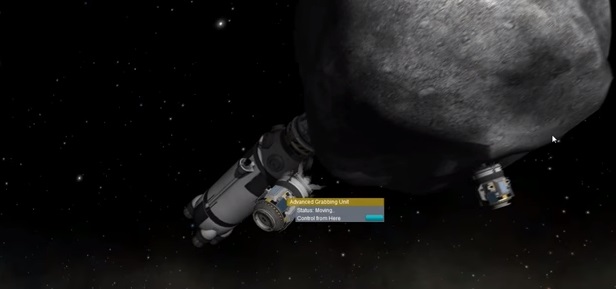 Das Befestigen von Objekten an den Asteroiden geschieht mit der Kralle.