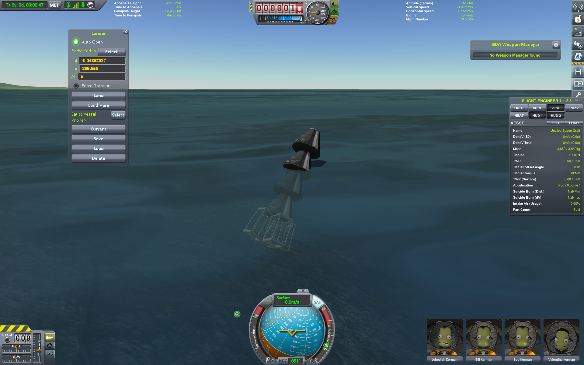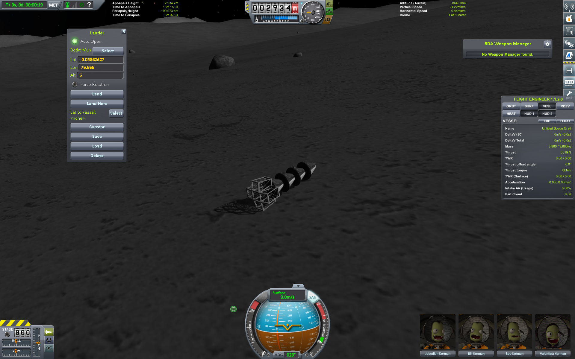Ziel ist es alle 4 Kerbals ( Jeb, Val, Bill, Bob ) auf den Mun zu landen und lebend zurück nach Kerbin zu bringen und zwar billiger als SpaceX.
