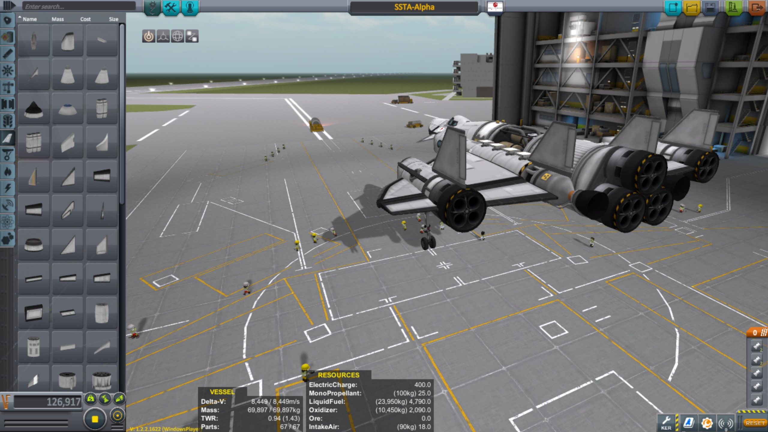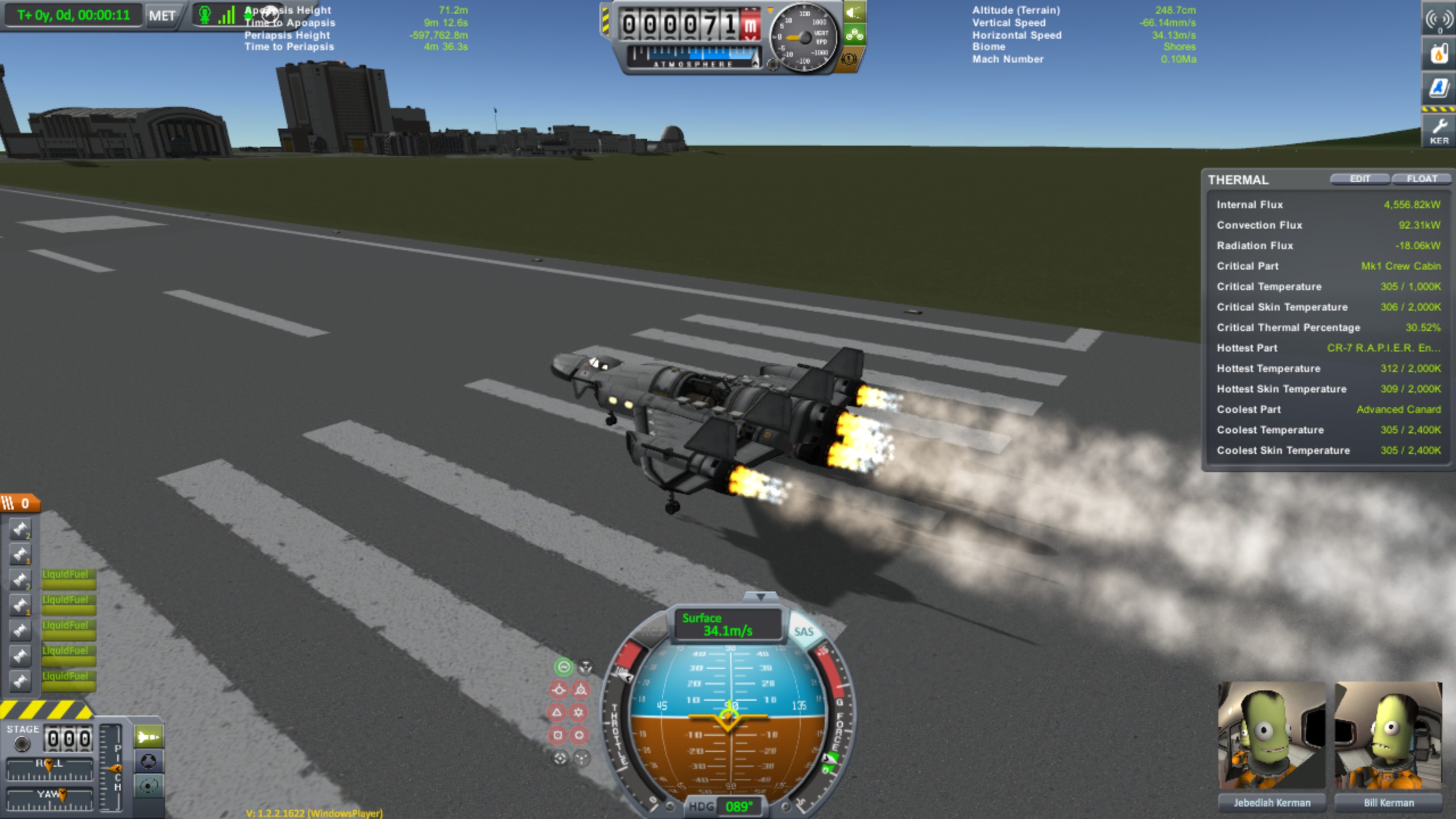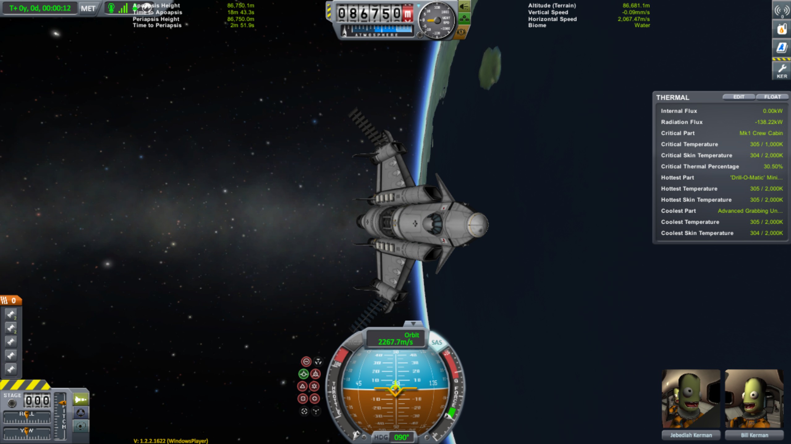 • Für die Screenshots wurde gecheatet, bin aber im Test auf einen 114x123 Orbit gekommen. Die Screenshots standen unter Zeitdruck, weil ich während des Test Aerodynamic Forces und Temparature Overlay aktiviert hatte und keine Screenshots erstellen konnte.