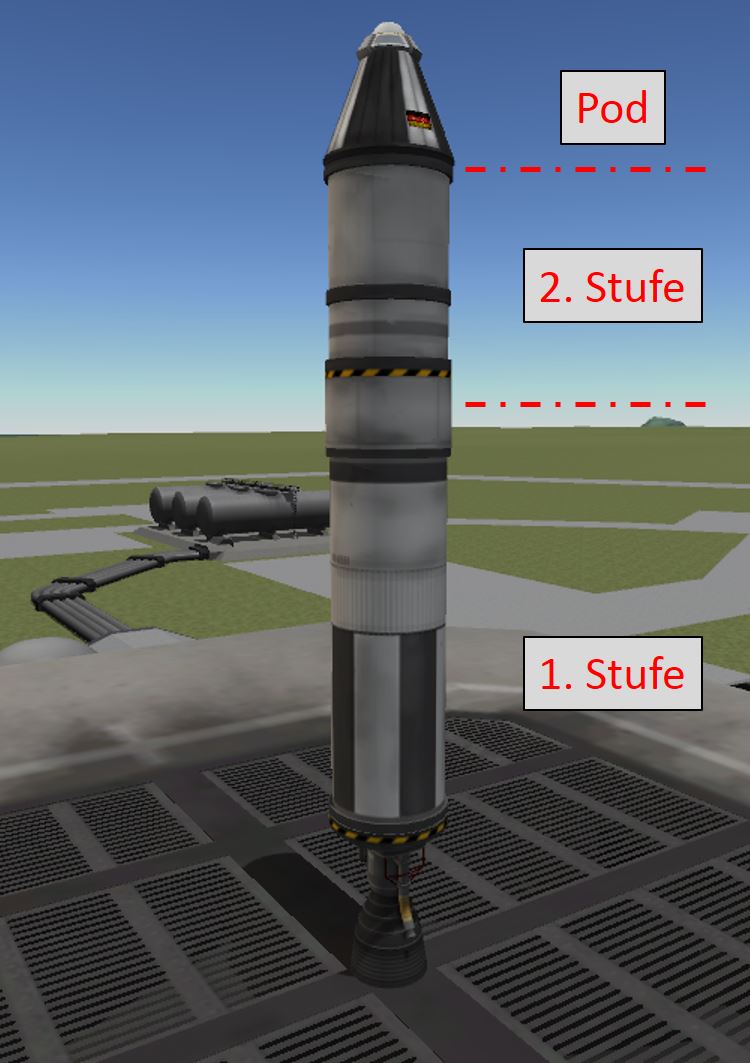 In dem Starterset Rakete gibt es keine Decoupler im Sinne von KSP - logisch denn alle Teile sind mit LEGO Pins miteinander verbunden. Deswegen habe ich kein Zwischenstück zwischen dem Pod und der 2. Stufe gemacht. Aber wie mache ich es zwischen Stufe 1 und 2.