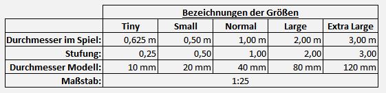 Im Folgenden seht ihr die Maßstabstabelle für den Größenvergleich.