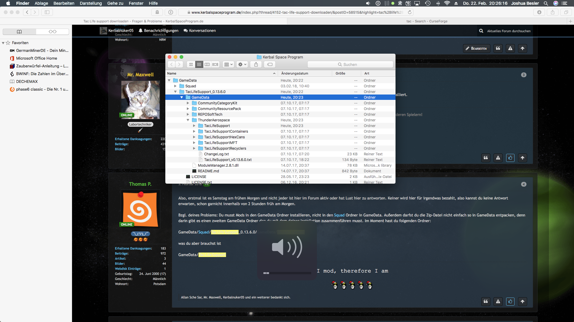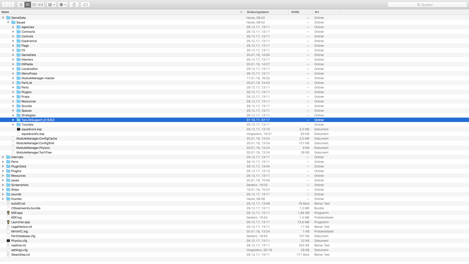 • Nicht ganz richtig mit dem TacLifeSupport-Ordner. TAC-Lifesupport muss im Ordner ThunderAerospace sein. Also GameData/ThunderAerospace. Da drin sind dann die Ordner TacLifeSuport, TacLifeSupportContainers, TacLifeSupportHexCans usw.