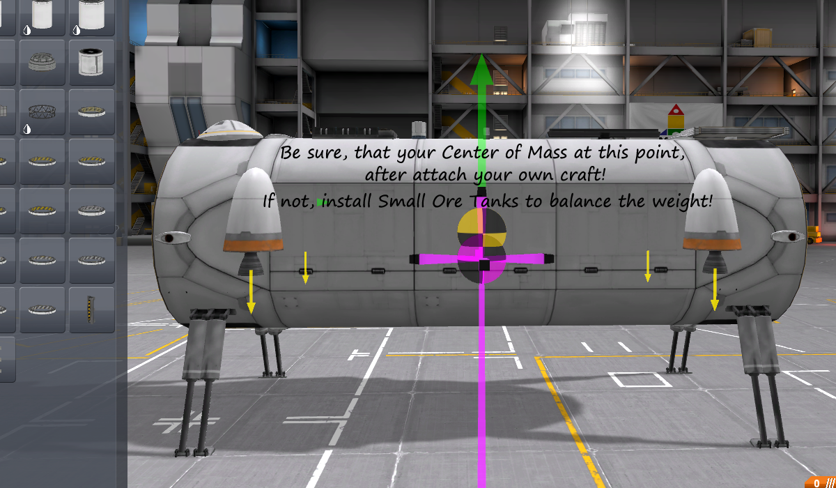 Zugegeben einen Nachteil hat diese Konstruktion schon, denn man muss die Ladung ja irgendwie seitlich von der Rampe bekommen und das kann gerade bei maximaler Länge der Nutzlast zu einem Problem werden (speziell wenn man jetzt einen Rover längsseits verbaut hat und das ganze so realistisch wie möglich spielen will, also ohne irgendwo dagegen zu stoßen).