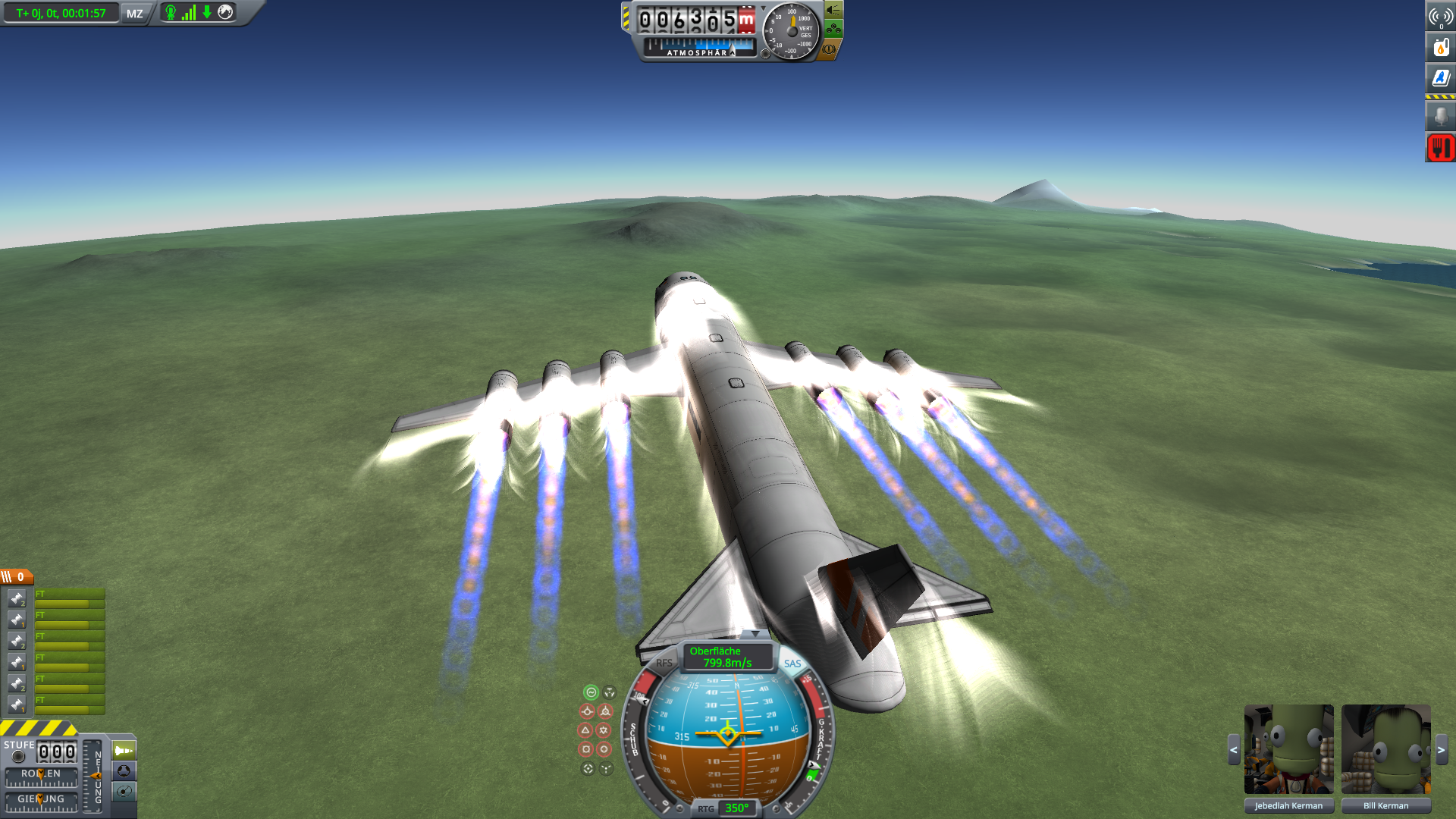 Warum verbaust du die Hinterräder soo weit am Ende? Würdest du sie knapp hinterm Schwerpunkt verbauen, wärst du schon vor dem Ende der Rollbahn in der Luft ![]()