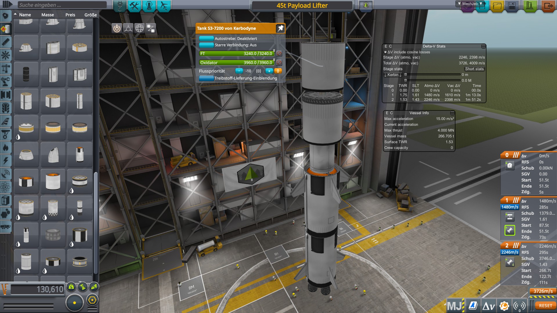 Hier die Rakete mit einem S3-7200 Tank (40,5t). Extra gesperrt, damit der Treibstoff nicht mit berechnet wird.