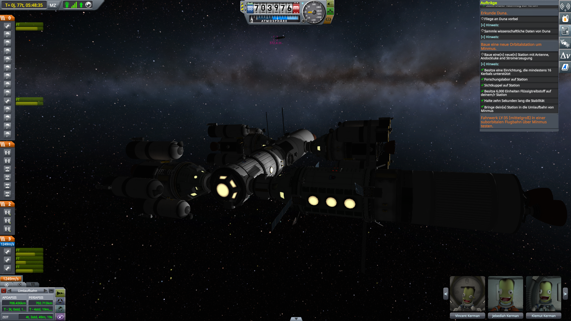 Mein Plan B besteht zurzeit darin eine neue Raumstation zu bauen die ich komplett mit einer Rakete in einen Orbit um Minmus schicken will. -