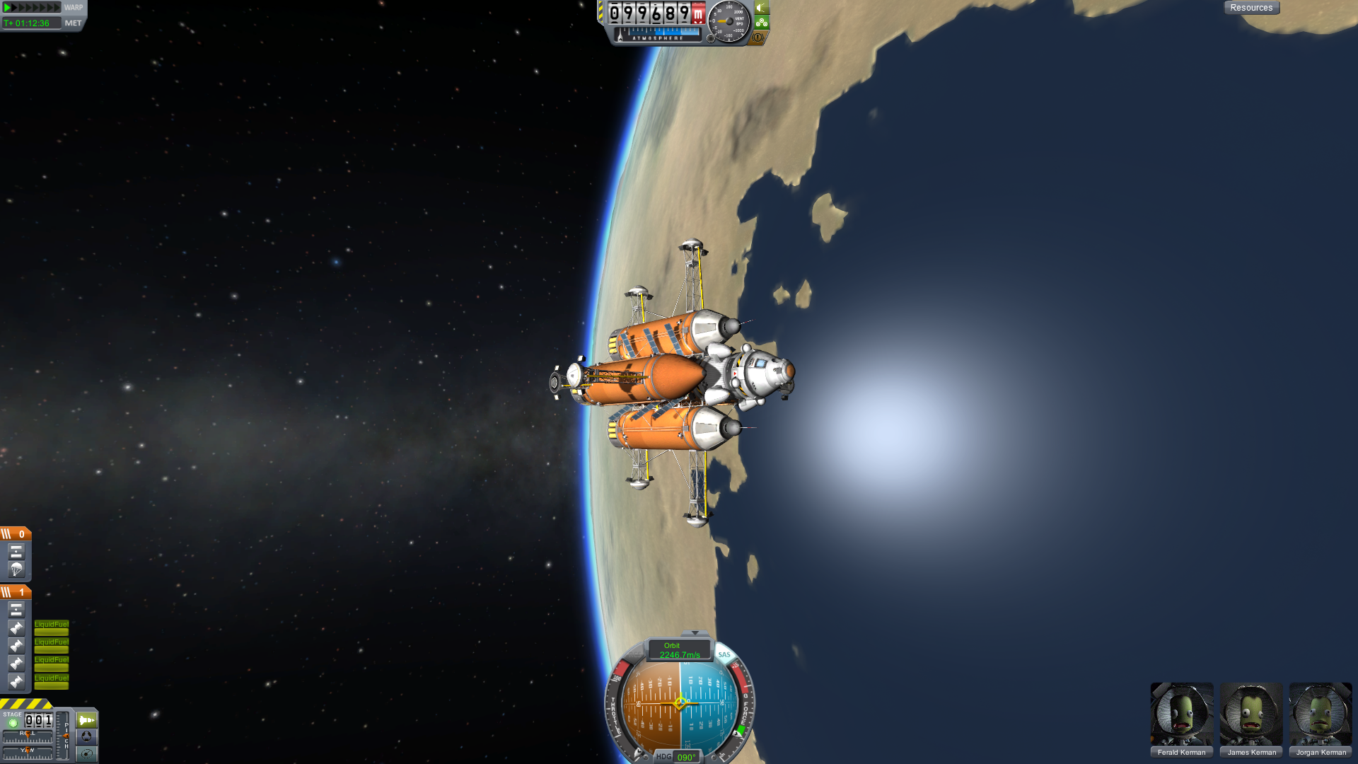 Jedoch führe ich nichtmehr genug Treibstoff mit um diese mission zu unterstützen. Meine derzeitigen koordinaten sind 100.000meter hoher orbit im 90° verlauf vom KSC aus.