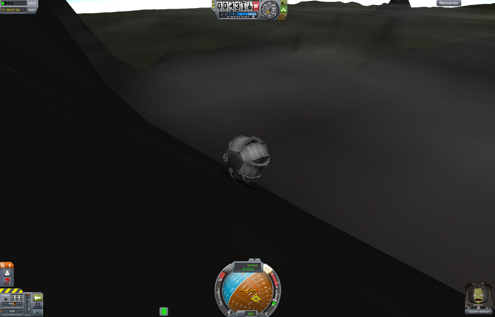 Die Aufgabe ist, ein beliebiges Objekt, einen beliebigen Berg herunterkullern zu lassen und es muss sich mindestens ein Kerbal an Bord befinden der ordentlich durchgeschüttelt wird.