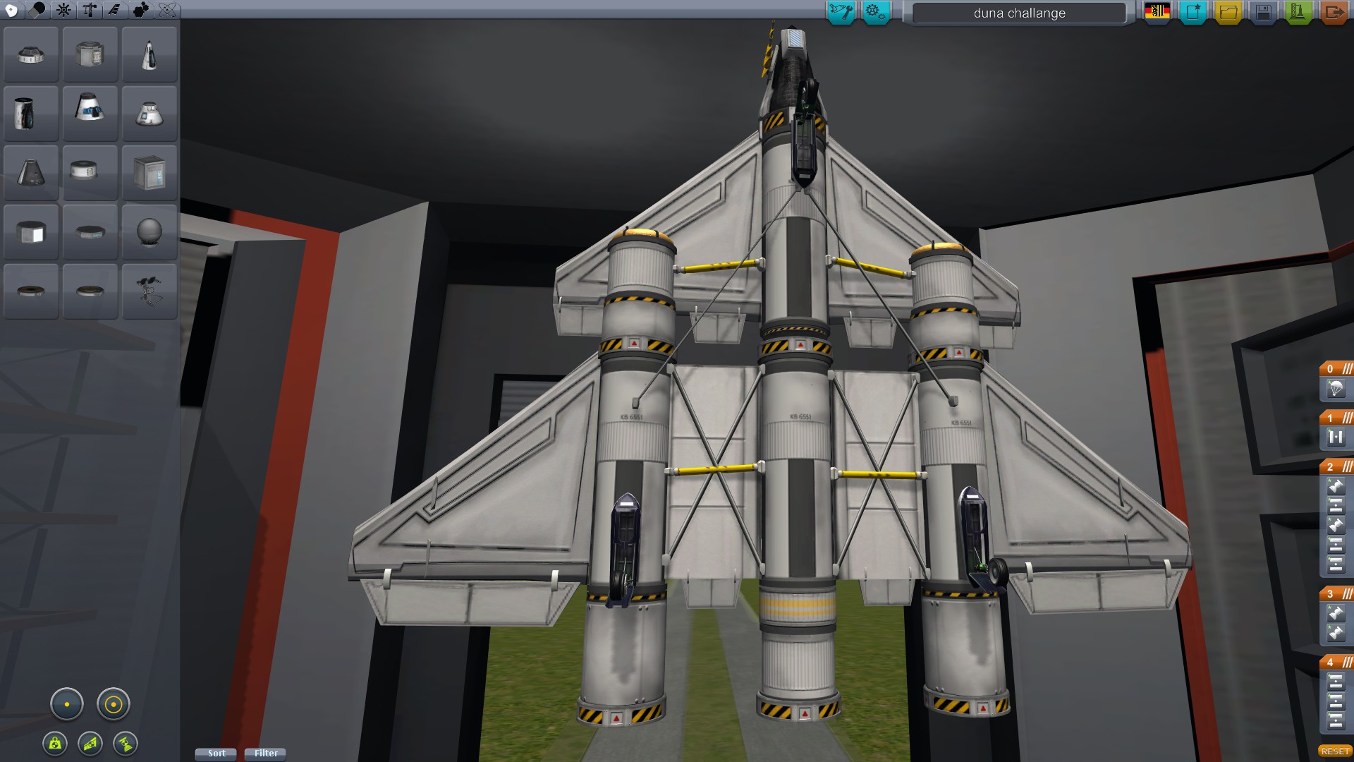 die Booster der Startrakete sollten mit Aerospike-Triebwerken ausgestattet sein (hinten am Gleiter ist die Center Stage zum Einschuss Richtung Mars (Duna) zu sehen) :