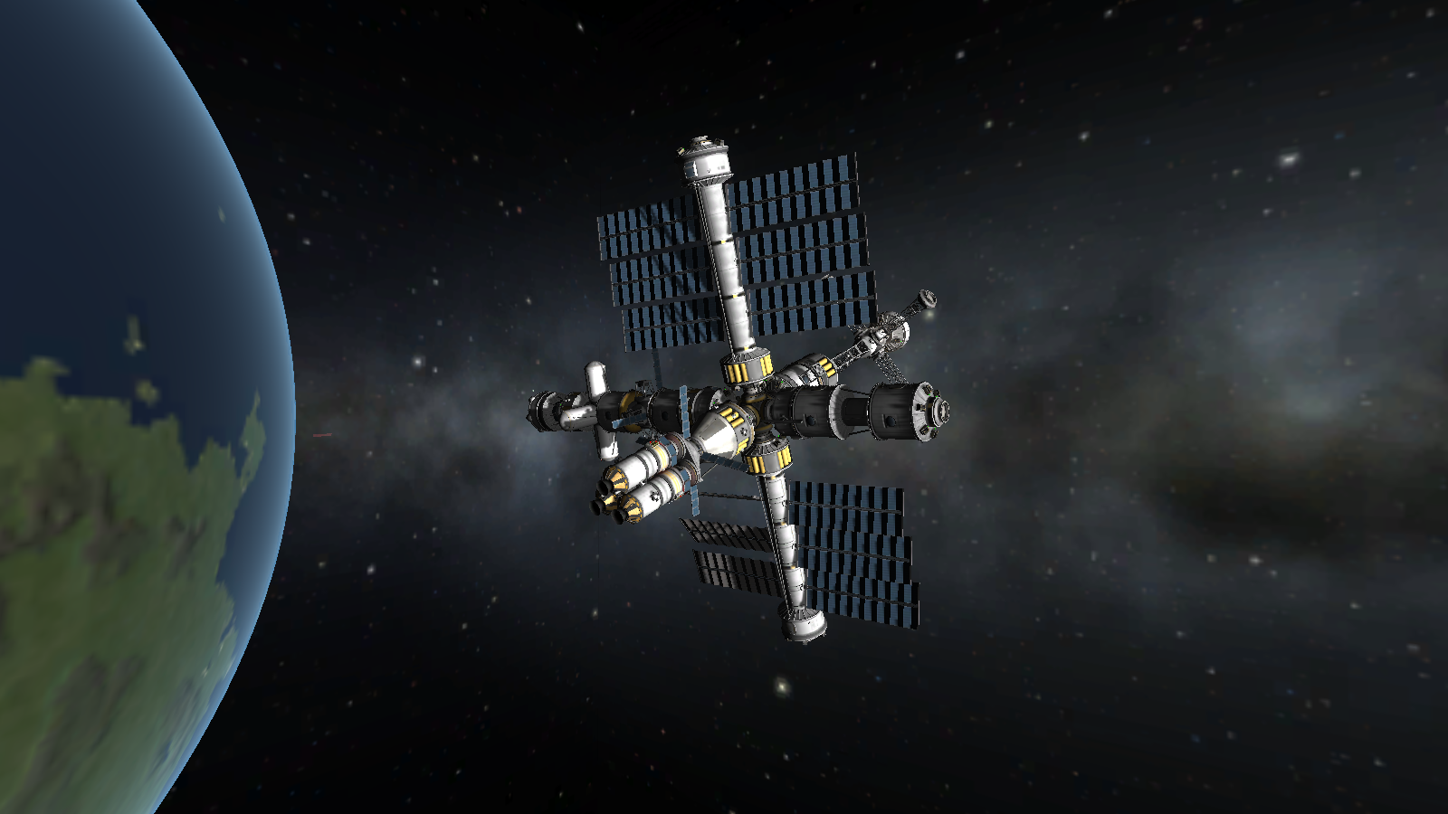 #33 - Nähere Aufnahme der Station, gut zu sehen der Dockingausleger mit dem Pod am Ende aus dem übrigens einen wundervollen Blick auf Kerbin hat