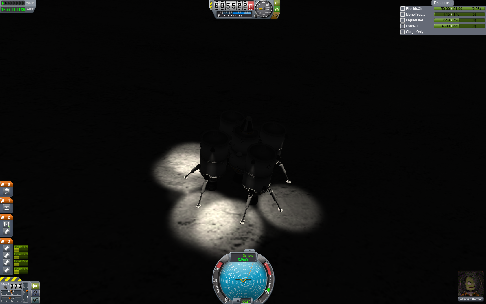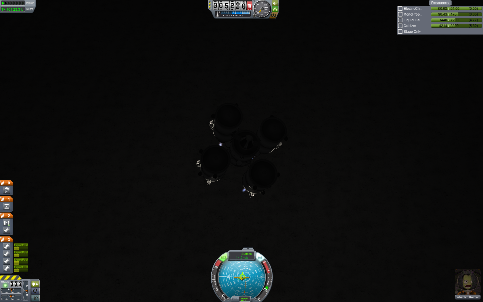Hatte aus versehen 80 Liter Rcs am rover angebracht, habe aber sofort die Tankdüsen geschlossen und wie man auf den Screens sehen kann, hab ich nichts davon benutzt...