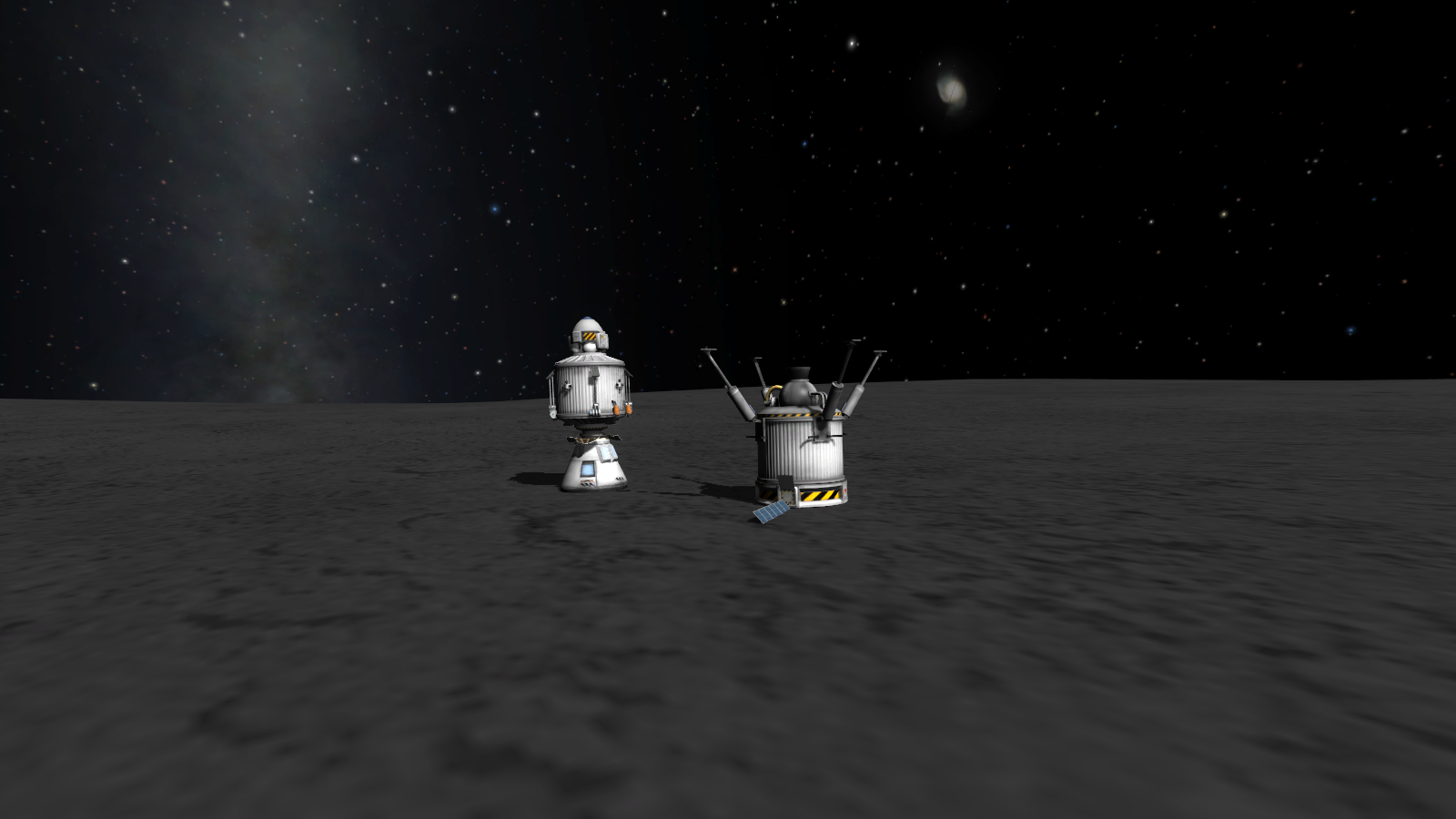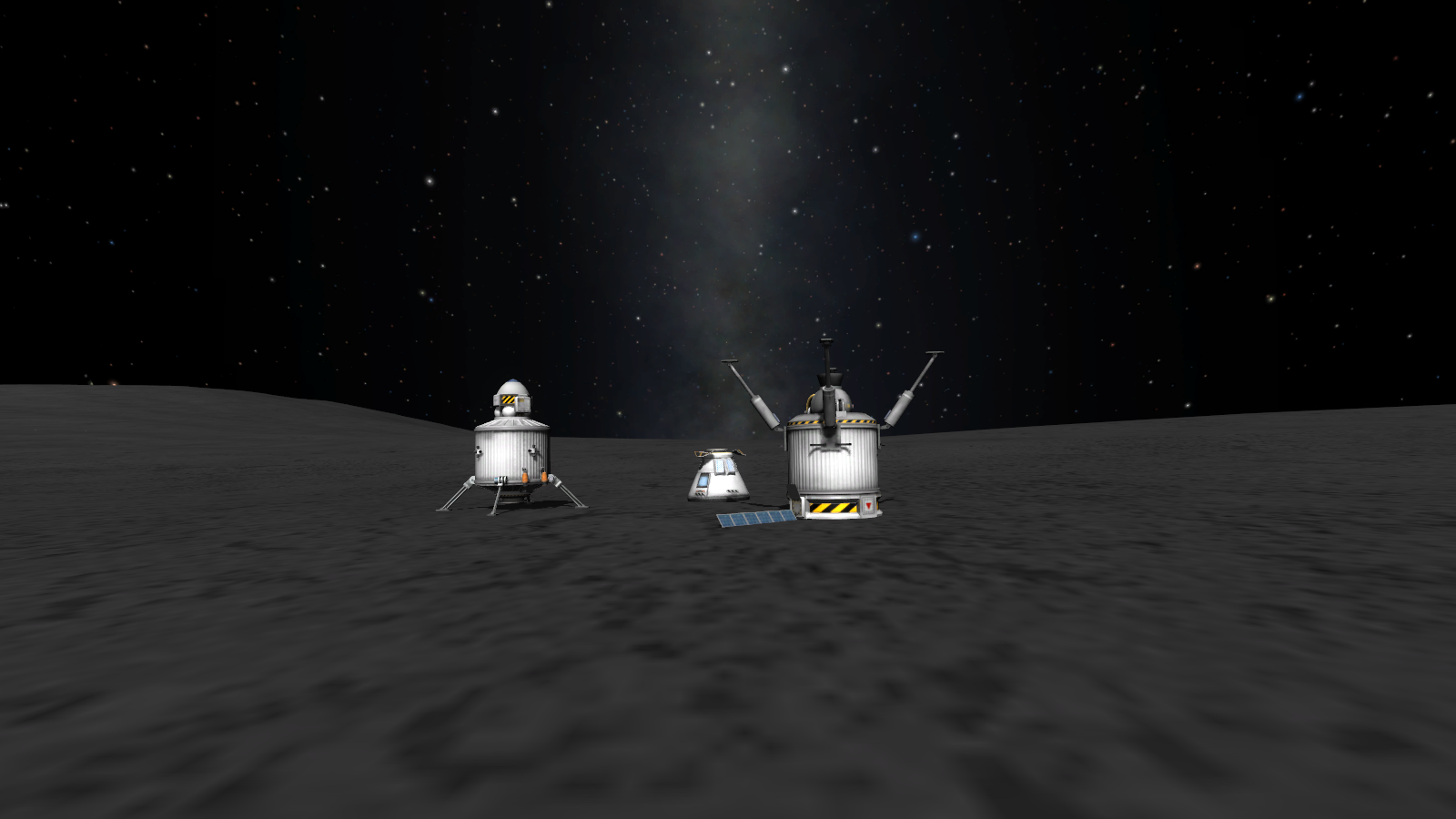 Beschreibung: Nach sieben Tagen des Warten, erreicht der Rettungs-Skycrane den Mun um Jeb, Bob und Bill von der Oberfläche zu befreien. Docke mit dem Skycrane an die Oberseite der gestrandeten Kapsel und befördere sie zurück nach Kerbin.