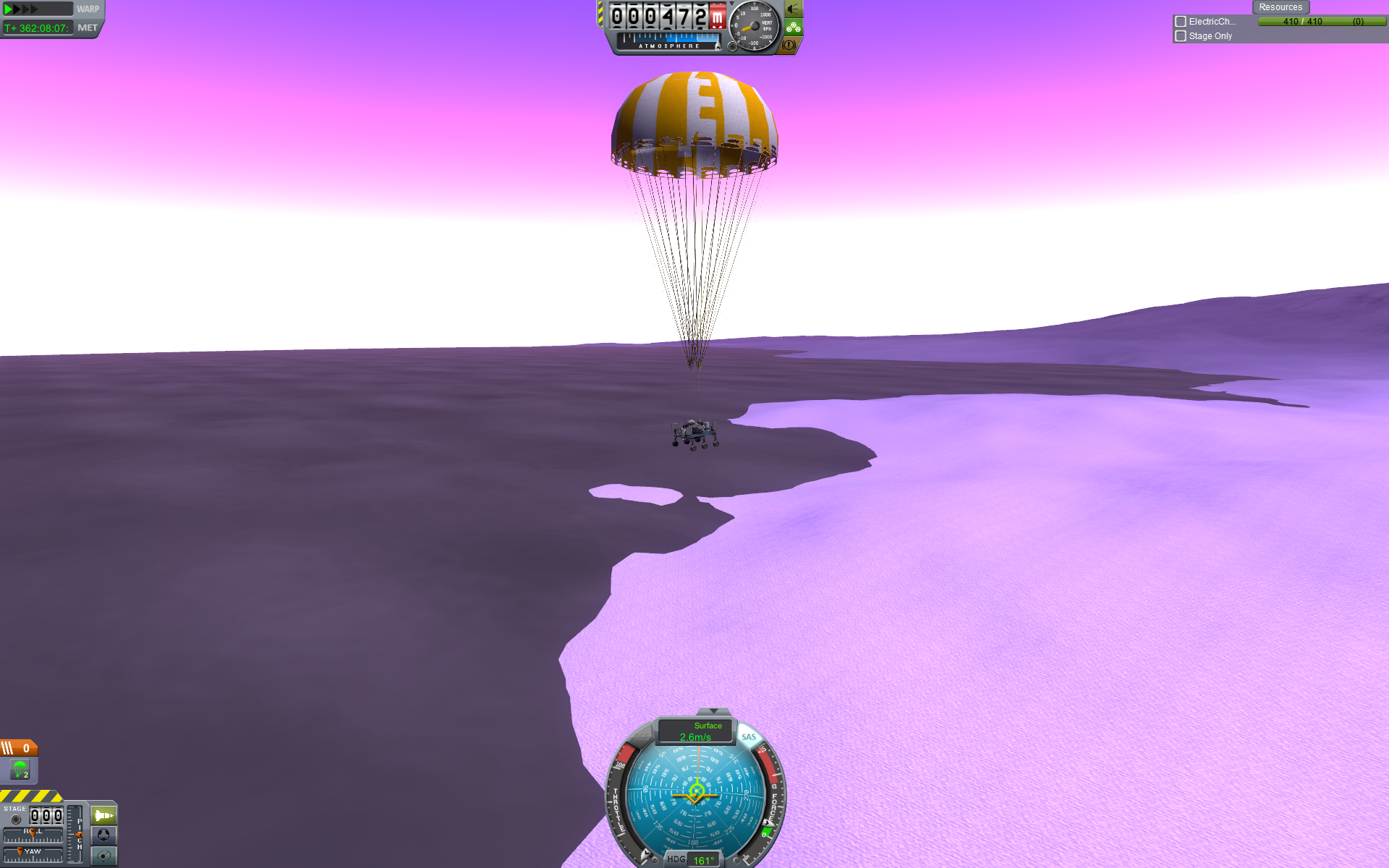 4. Landung (Jeb ist auch ohne große Treibstoffreserven bei bester Laune und mach sich wie immer keinerlei Sorgen)