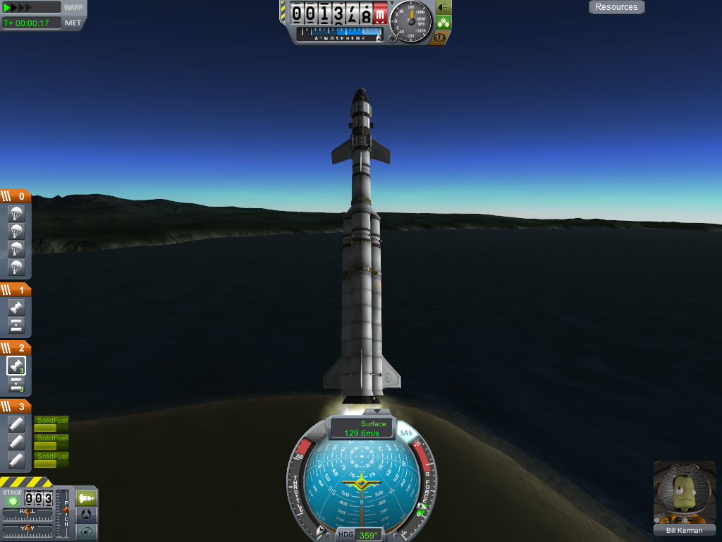 Im ersten bild die Komplette Rakete dann die Zweite Stufe und zum schluss die dritte Stufe. bei der ersten klappt alles wunderbar. bei der zweiten und dritten hapert es dann erst wenn ich eine gewisse höhe erreicht habe dann ist die Steuerung stabil und bricht nicht aus.