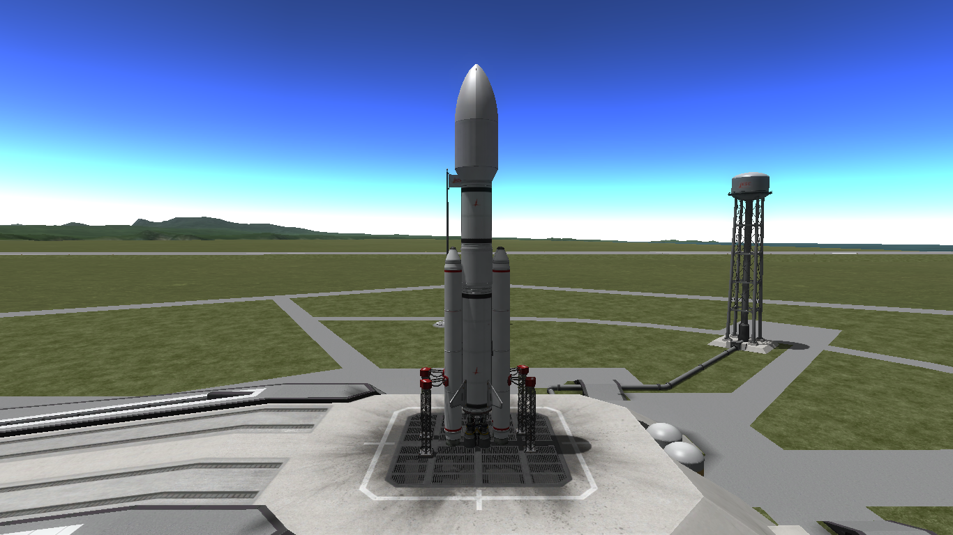 Die Ares V-Rakete der NASA wird als Schwerlastrakete benutzt. Und in KSP benutze ich sie auch als solche. Mit ihr habe ich viele Teile meiner Weltraumstation in den Orbit geschossen. Ich benutze ihn aber auch für Schwerlastsatelliten, welche in den Orbit oder den Munorbit geschossen wird. Leichte interplanetare Raketen können mit der Rakete auch in den Weltraum geschossen werden.Parts: 158 Electric Charge: 3630 Mono Propellant: 520 Solid Fuel: 11400 Liquid Fuel: 520 Oxidizer: 6188