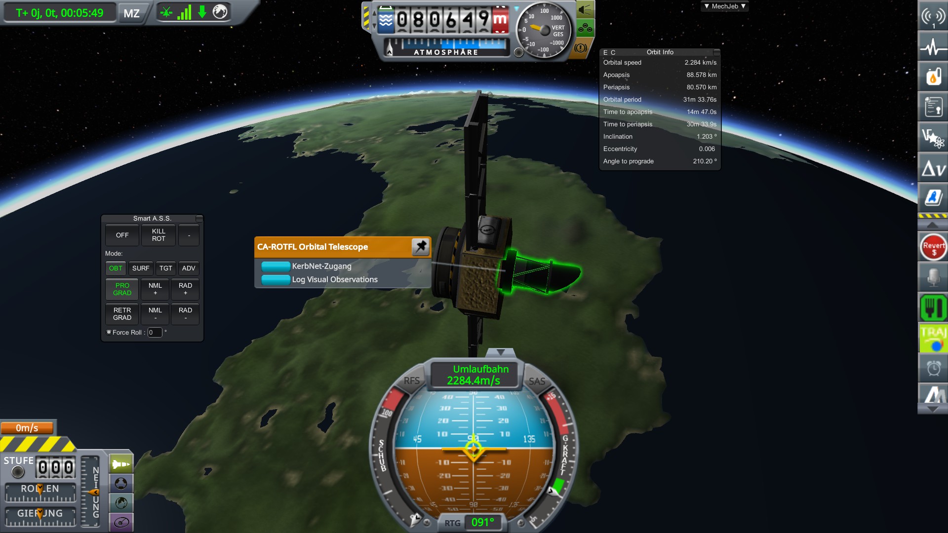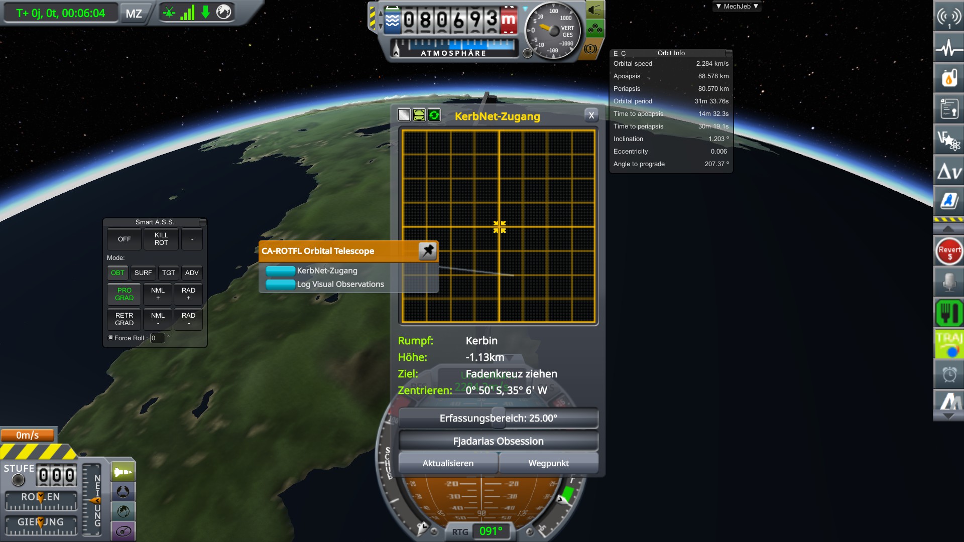 Da ist im Menü noch ein weiterer Button um das Teleskop zu starten. Entweder der unterste oder der darüber. Da wo auch das mit dem min und max sun angle steht. Das große Fenster erscheint gar nicht erst bei der Funktion mit Kerbalism.