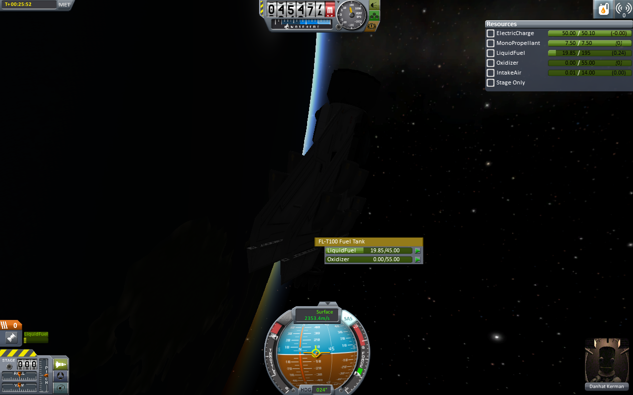 die Abfallentsorgung. Doch das Teil hält besser als das Triebwerk undJeb denkt sich: "moar boosters" sind nicht auf Lager also muss ich die