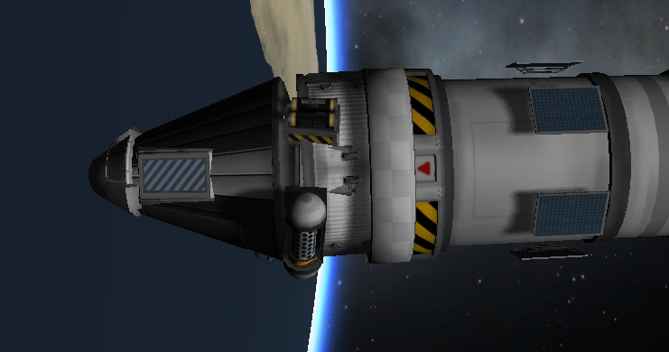 - bei etwa 4.000 m öffne ich den Fallschirm (ca. 250 - 300 m/s)So verbrauche ich weniger als 10 Einheiten Strom und ca. 40 - 45% des Hitzeschildes.