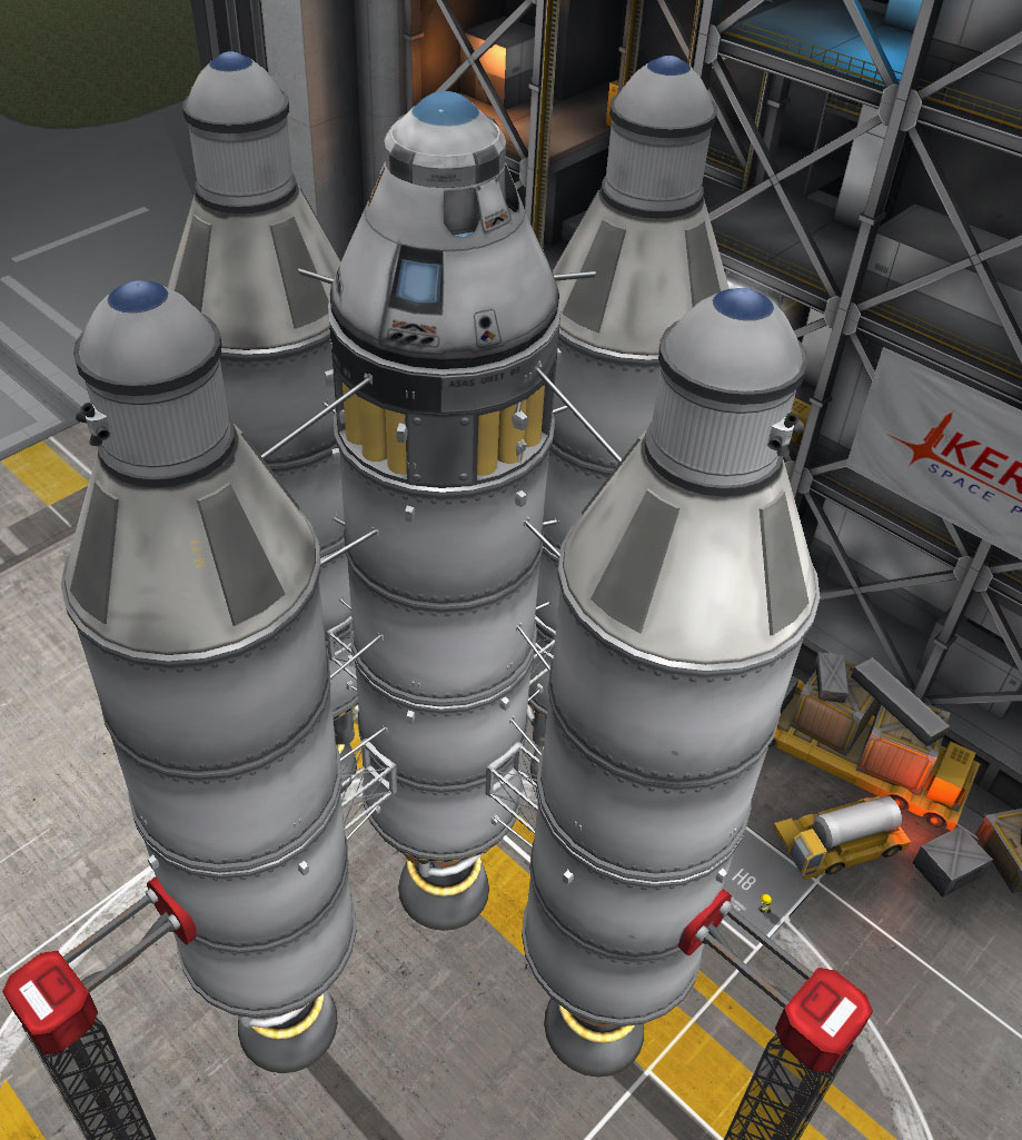 Die Mission hat mich sehr gereizt weil ich bisher noch nie einen Rover gebaut habe der meinen Ansprüchen genügt hat. Also hab ich ein wenig rumgebastelt und nachdem ich einen Rover hatte, hab ich dann einfach ne Rakete drum herum gebaut ![]()