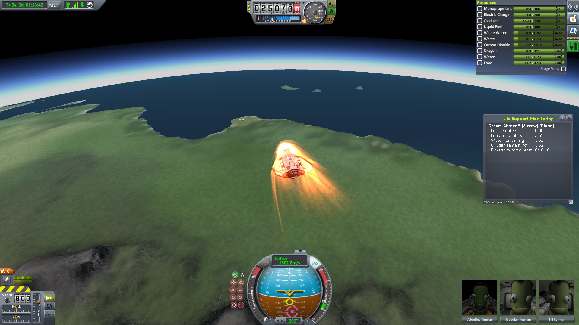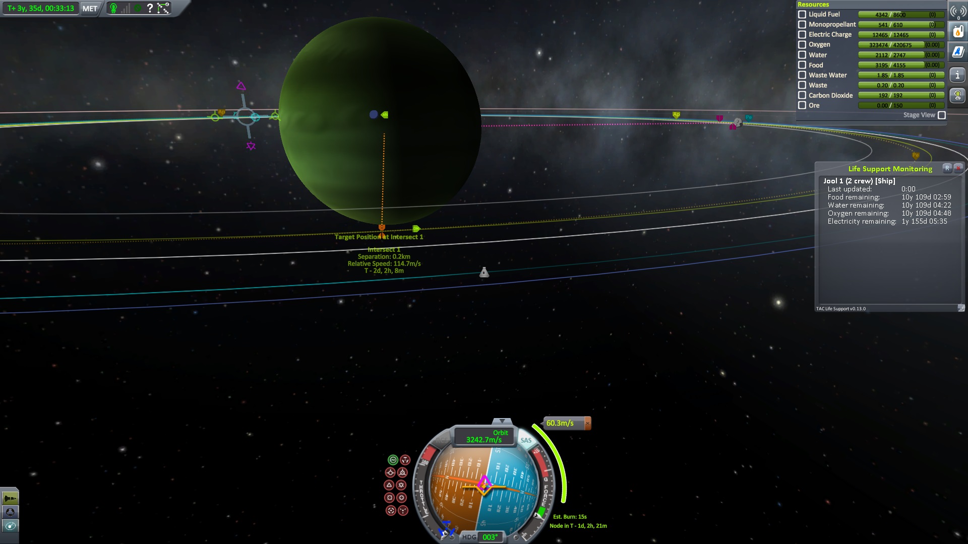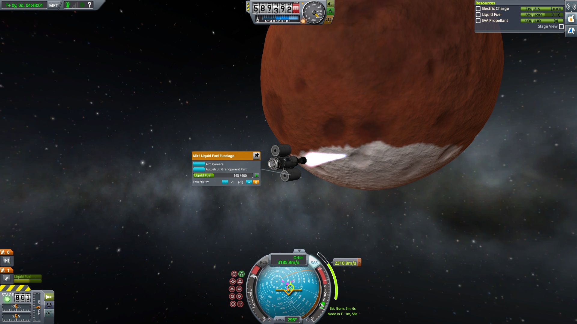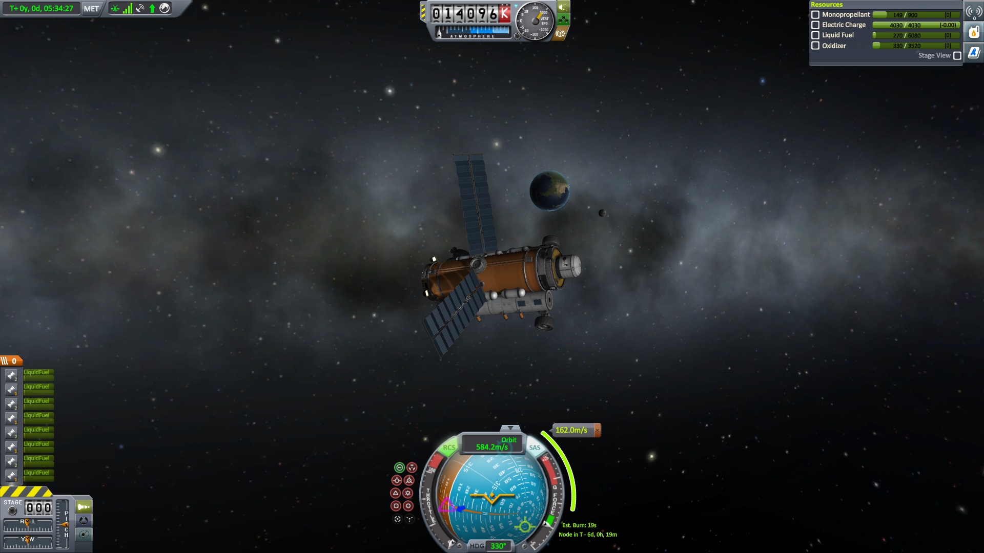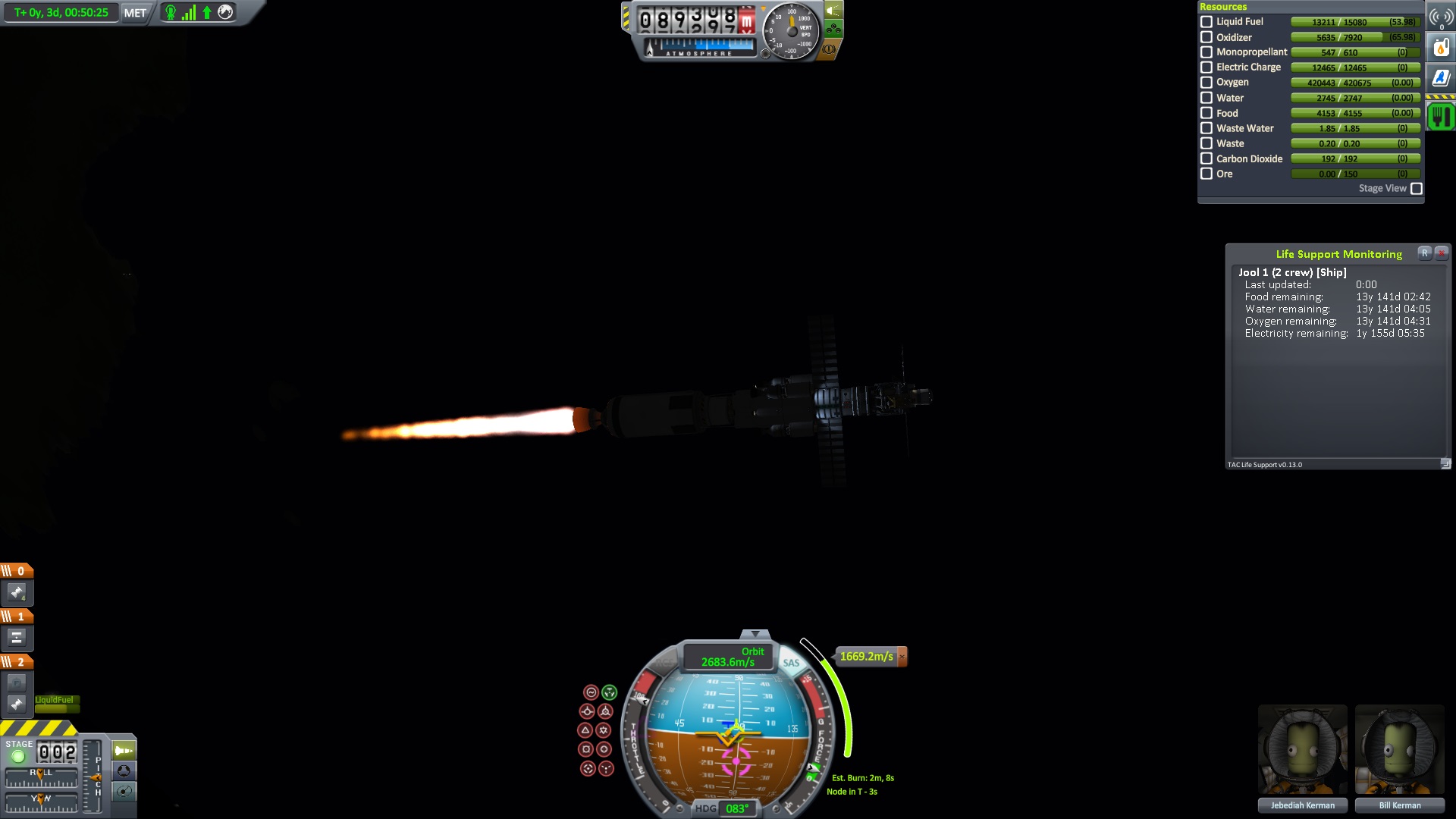 Nach dem die Position für das Bremsmanöver erreicht war zündeten die beiden Triebwerke. "Bill laufen die Triebwerke ?" fragte Jeb. "Ja" antworte Bill kurz, "warum fragst ?" Jeb: "Nun es fühlt sich nicht so an als wen sie es täten" "das wird knapp" dachte er, ließ sich aber nichts anmerken. Dann halt doch ne Vollbremsung