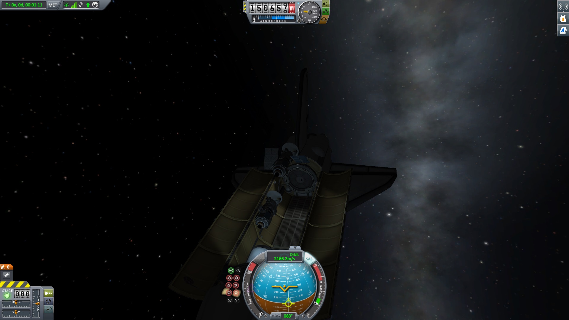 Wiedereintritt und Flugeigenschaften in der Atmosphäre standen auf dem Testprogramm. Mit recht hohen Erwartungen ging er das ganze an , da das Shuttle von der Firma AerosonAerospace gebaut worden war. Diese ist für gut fliegenden Jets bekannt. Dann wollen wir uns mal den Testflug anschauen, das ganze beginnt im Orbit.