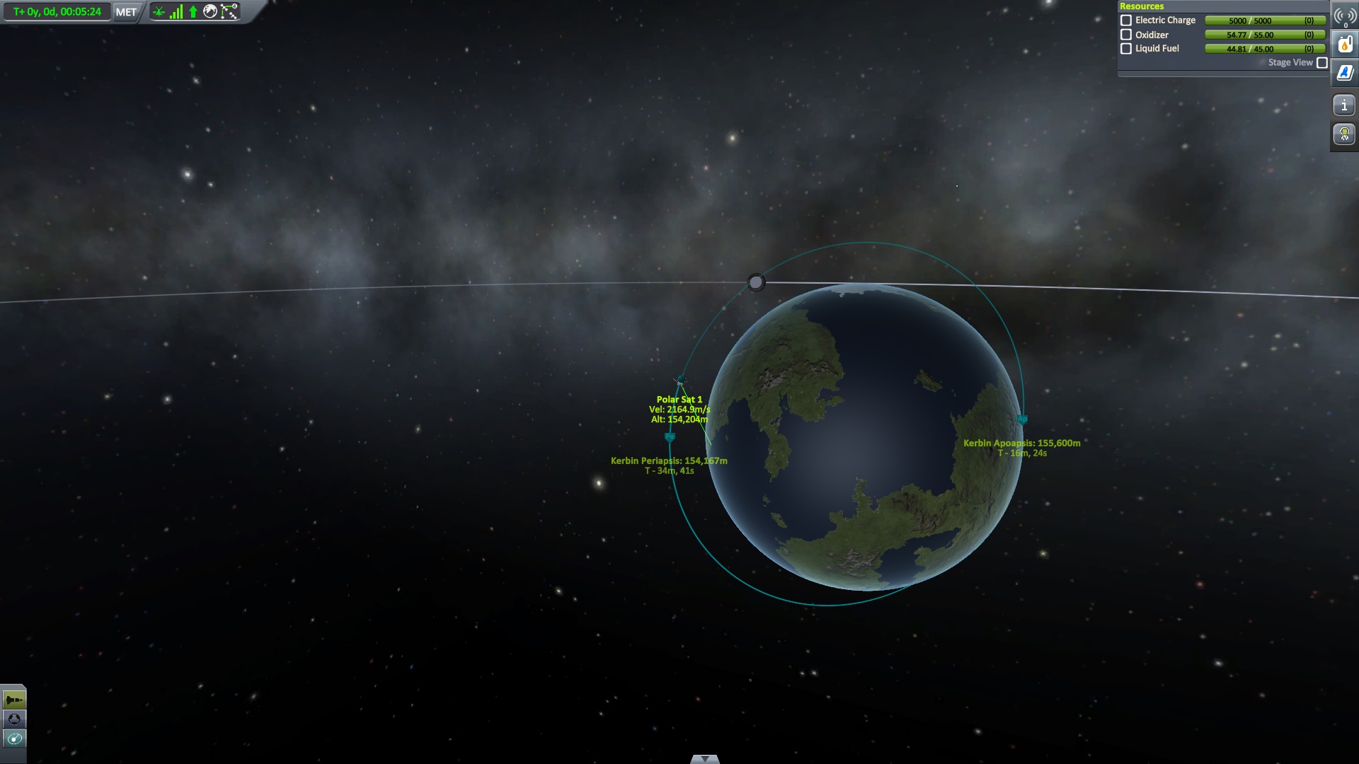 Die Rakete mit einem Satelliten war schnell gebaut und so ging es ab in einen Polaren Orbit.