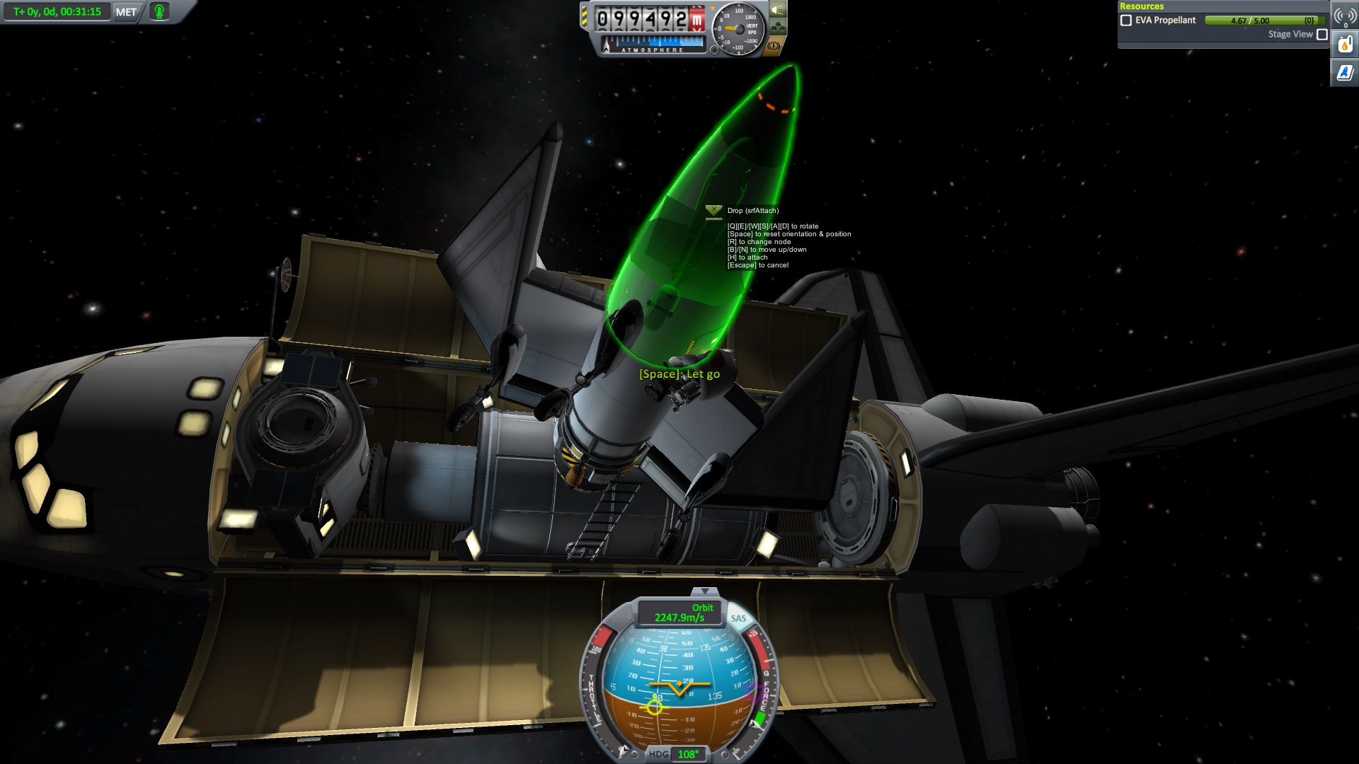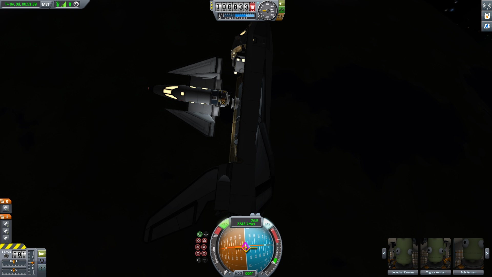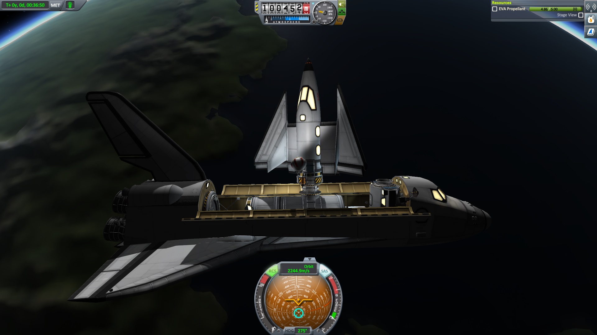 Da gerade ein Testflug mit dem Space Shuttle geplant war und dieses Flugklar auf der Rampe stand wurde beschlossen Jeb mit diesem aus dem Orbit abzuholen.