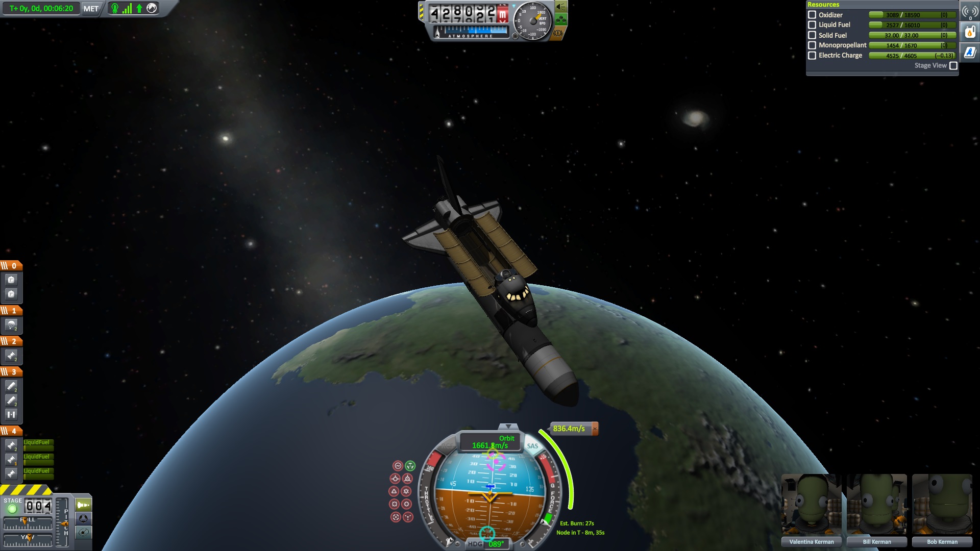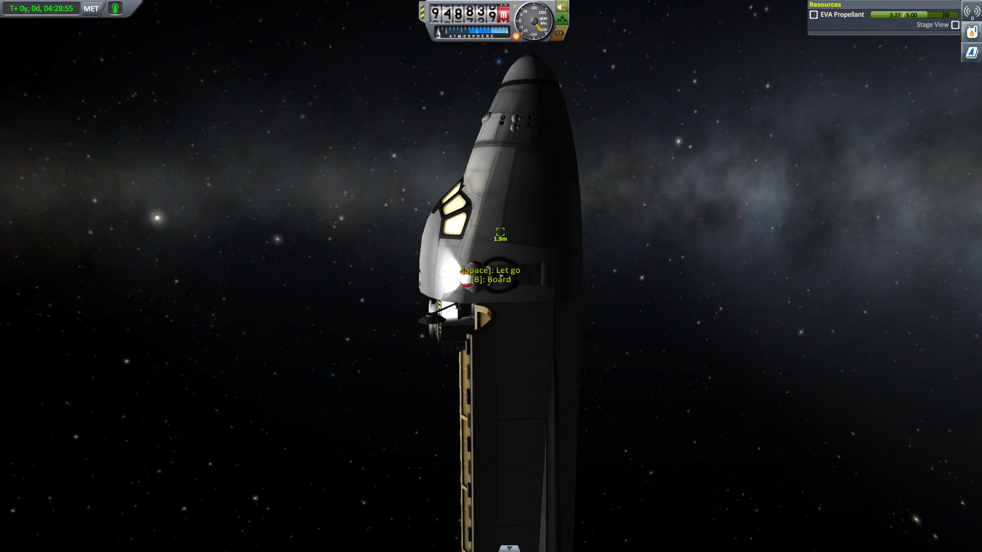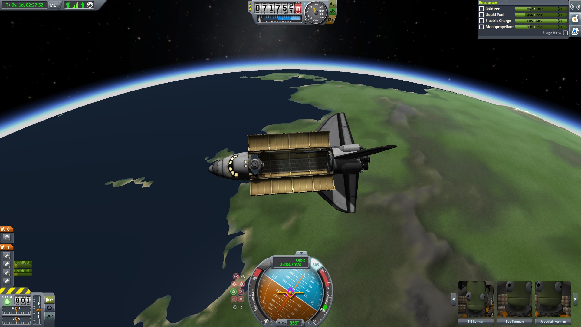 Da gerade ein Testflug mit dem Space Shuttle geplant war und dieses Flugklar auf der Rampe stand wurde beschlossen Jeb mit diesem aus dem Orbit abzuholen.