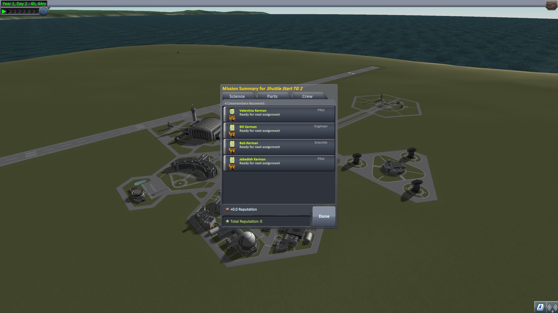 Was das Punkte sammeln angeht, für die ersten mußt man nicht mal starten sondern nur die Experimente auf der Startplattform machen , noch nen Bericht vom Piloten, das ganze Recovern und fertig. Das ganze kann man dann auch noch mal auf der Startbahn vom SPH machen. Danach kann mal kurz fliegen, da auch im Flug die Experimente durchführen und auch wieder einen Flugbericht vom Piloten. Und nur schon mal vorab zur Info man bekommt nur Punkte für ein Experiment wen es in der entsprechenden Umgebung das erste mal durch geführt wird.
