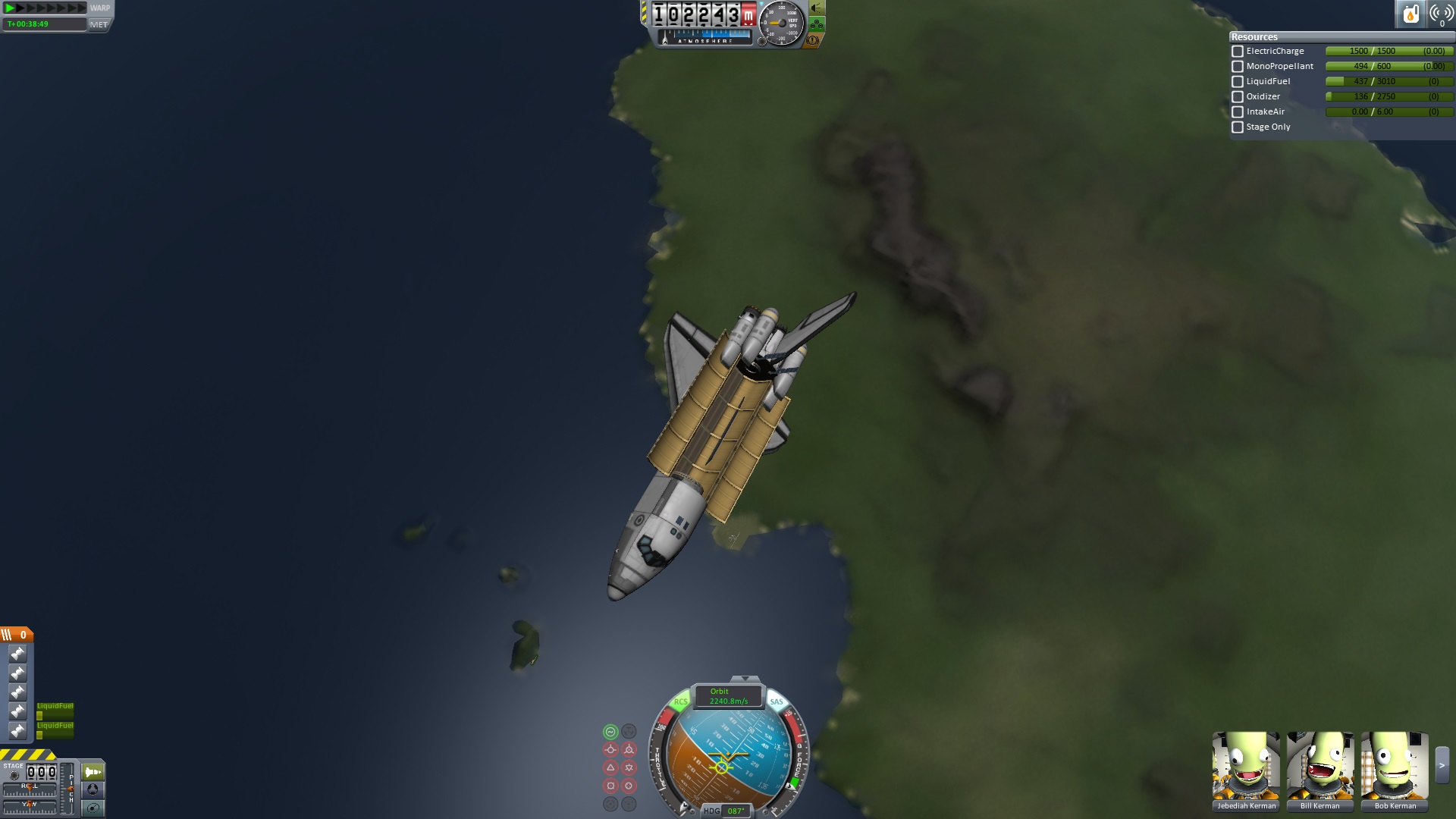 aber man kommt so mit mehr Treibstoff im Tank in den Orbit. erste Bild ist wo Hitze aus, zweite war mit 100% Hitze. Beides 100km Orbit.