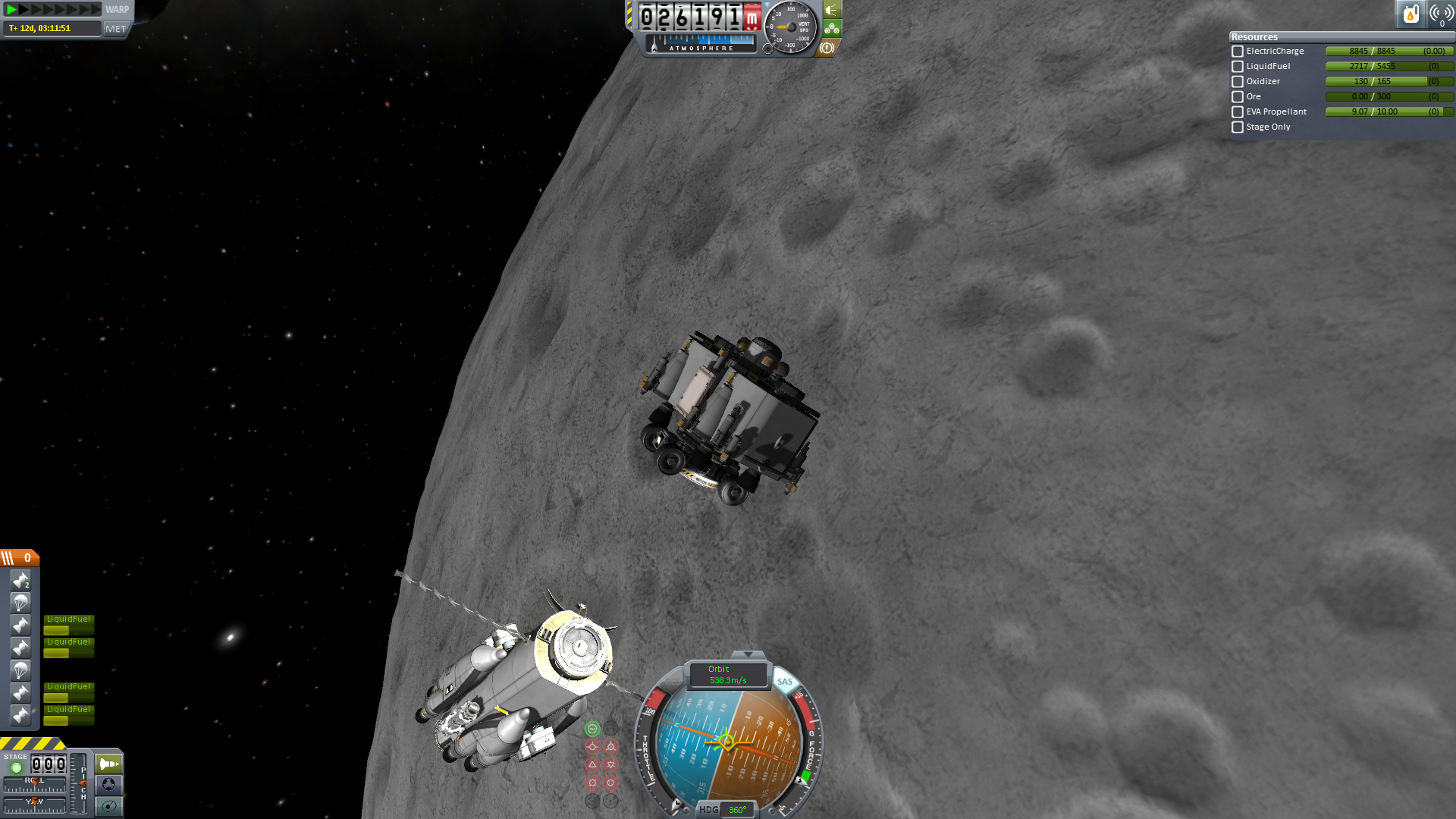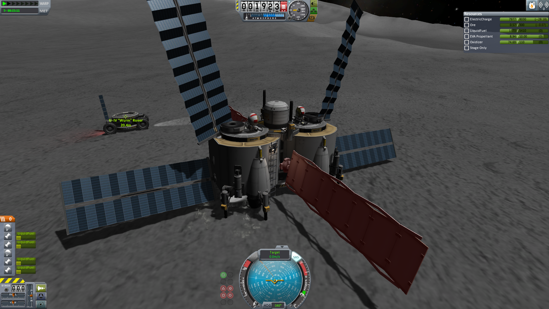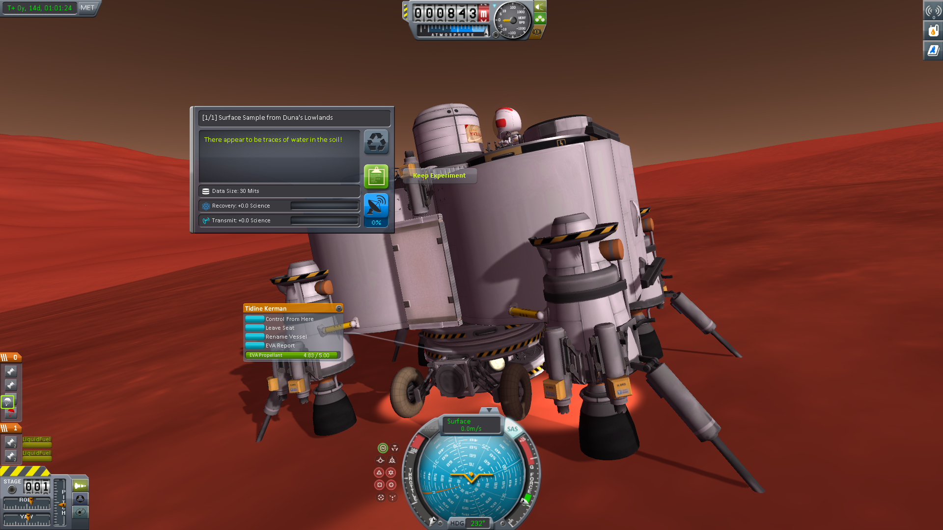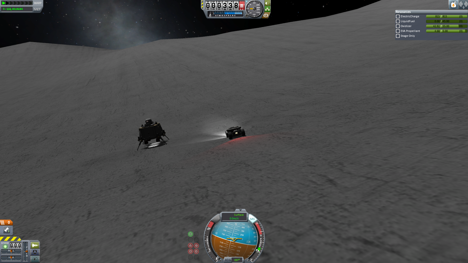 Da wir bereits auf Duna sind haben wir uns dazu entschloßen keine Sonde zu "Donut" zu senden sondern das machen wir gleich selber... (zum Glück gab es auch an diesem Landepunkt genug Ore)nach der Landung musten wir feststellen das der Rover auf dem Kopf liegt, ein kleiner Schubs und das Problem war behoben, da wir in der nähe auch noch Terrier Engines gefunden haben vermuten wir das hier ein Skycranemaneuver durchgeführt worden ist welches durch den starken schub beim wiederaufstieg des Landemoduls den Rover umstürzen ließ. (warum wurde uns das nicht mitgeteilt das es nur ein Unfall war ? hat die KASA etwas zu verbergen ?)