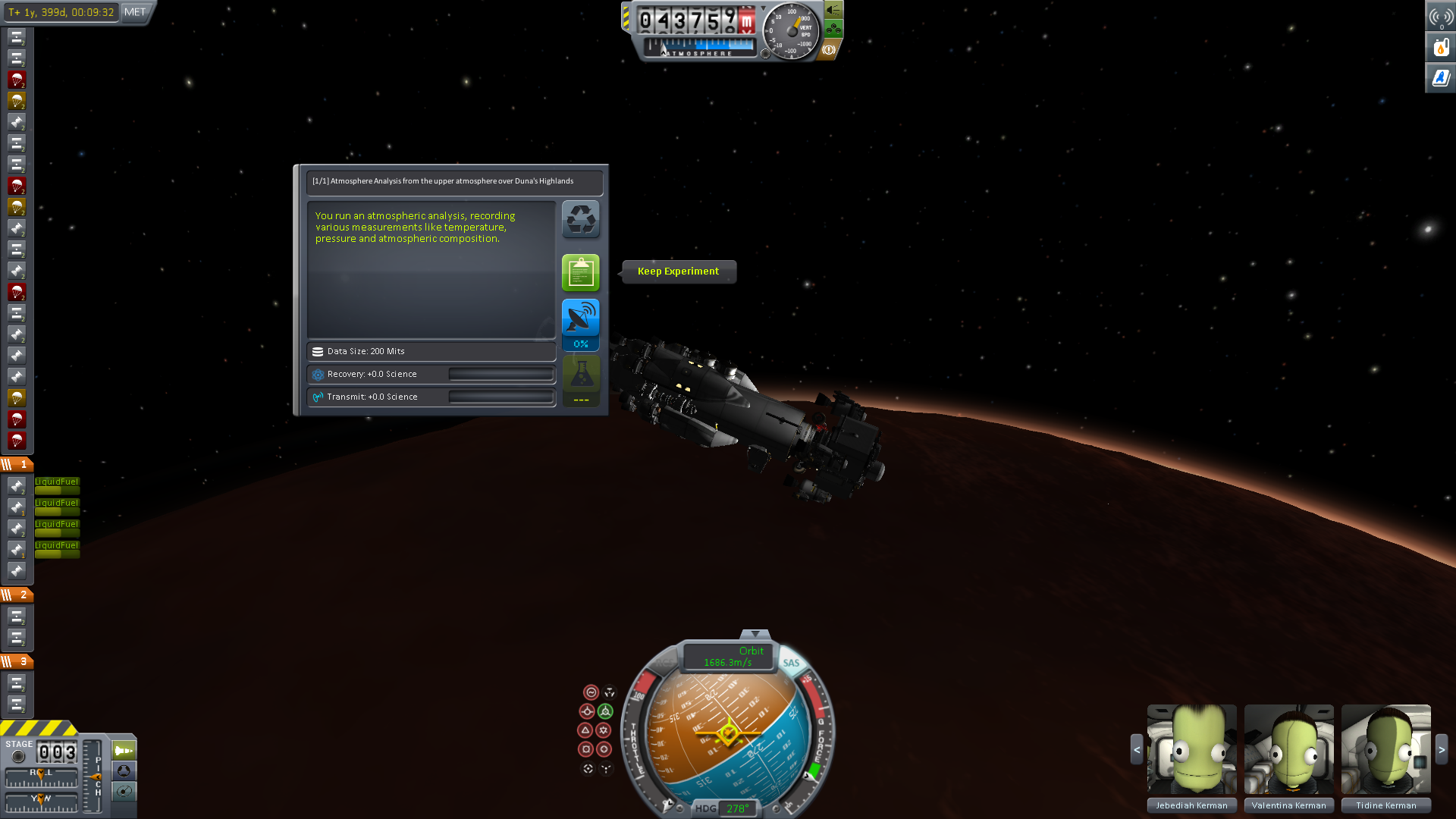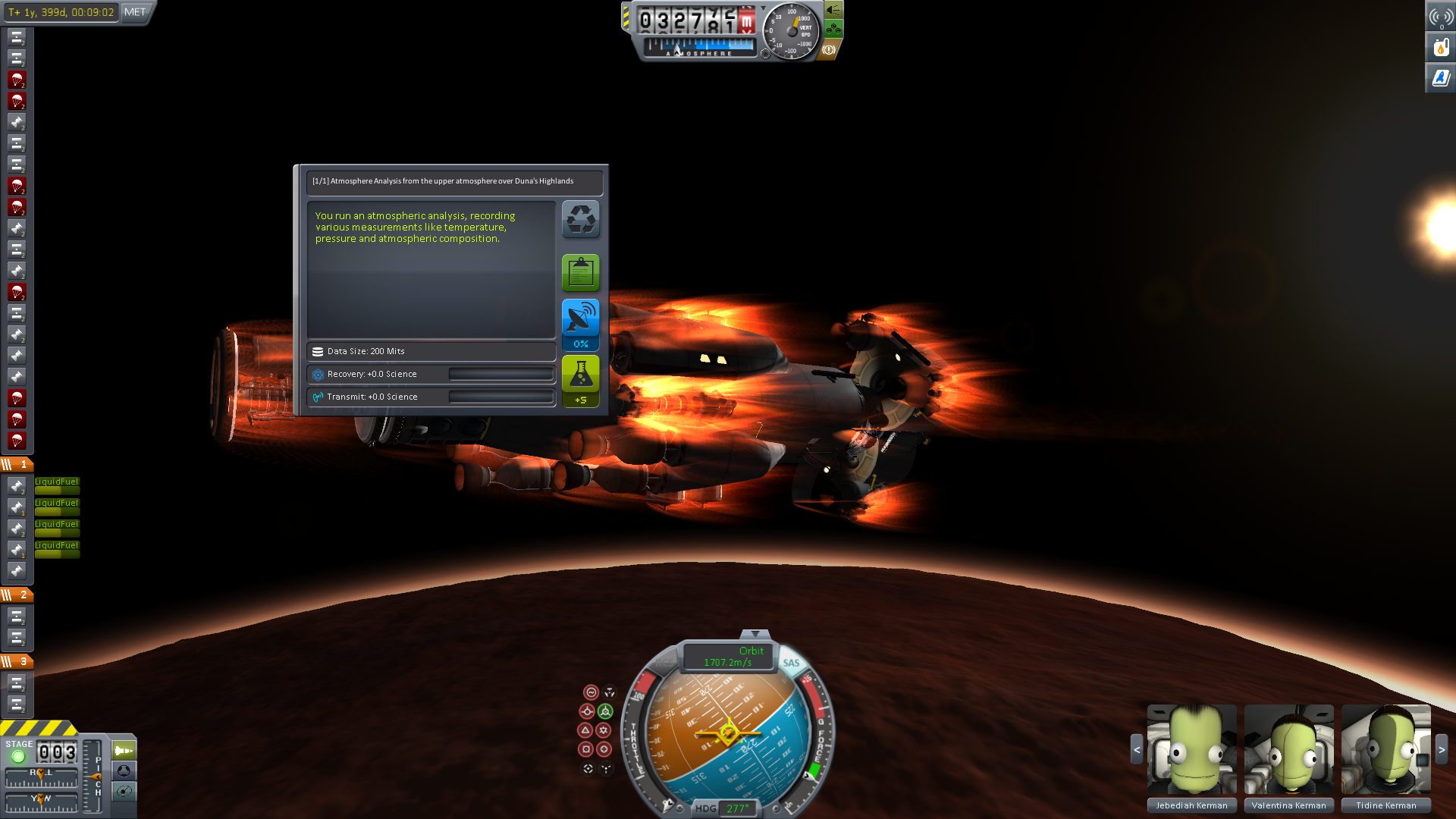 )Nachdem die U-IV den langen weg nach Duna hinter sich gebracht hat stand uns im wahrsten sinne die Feuertaufe bevor ... Misson comand hab befohlen einen Aerobreak in der Duna Atmoshpäre durchzuführen und gleichzeig Proben zu entnehmen.