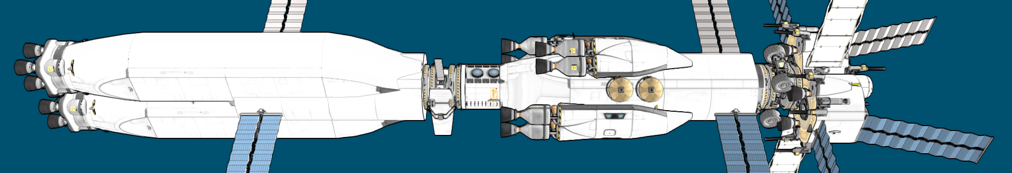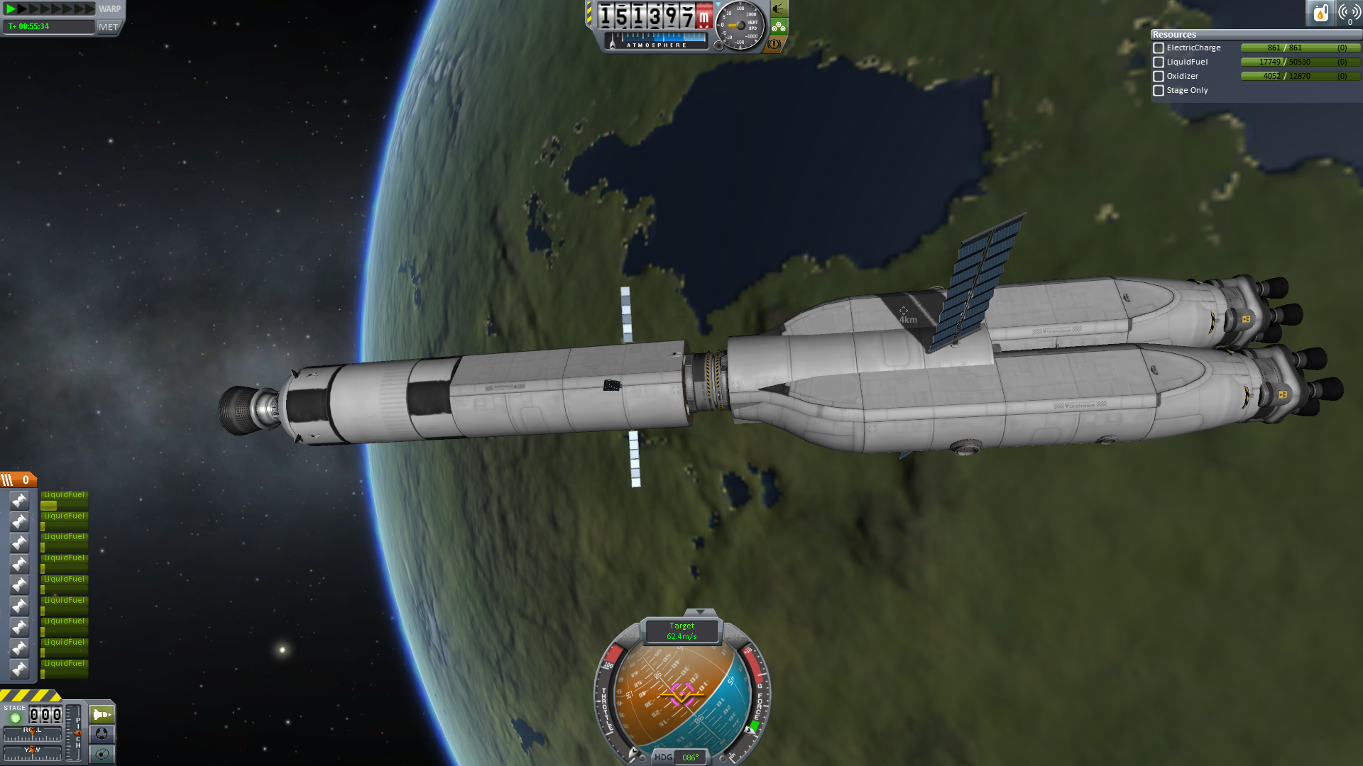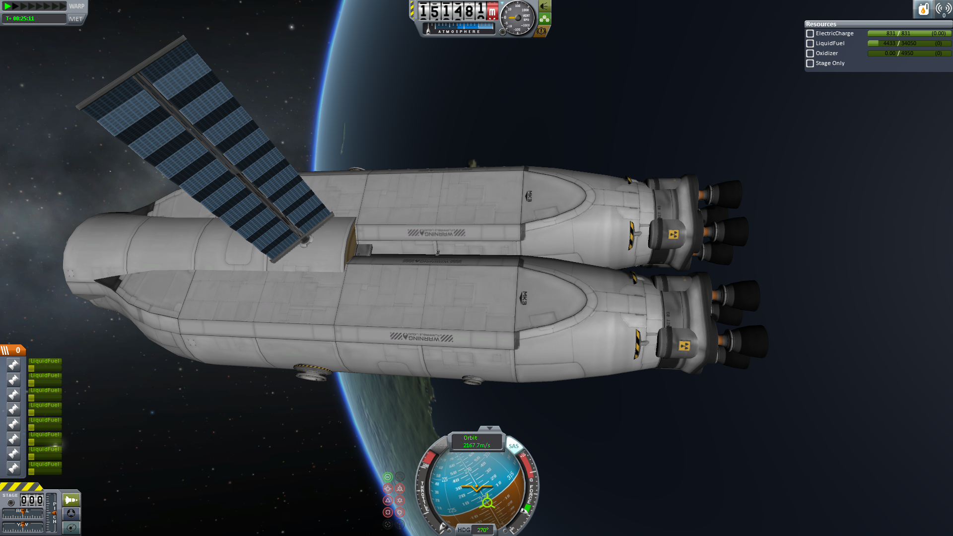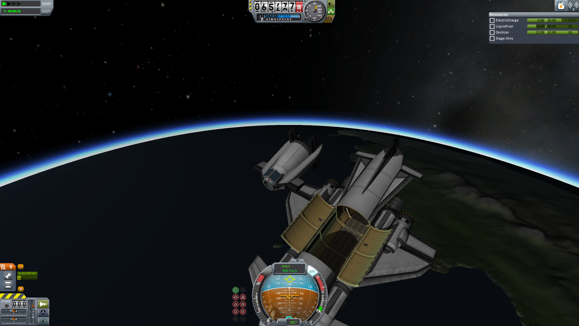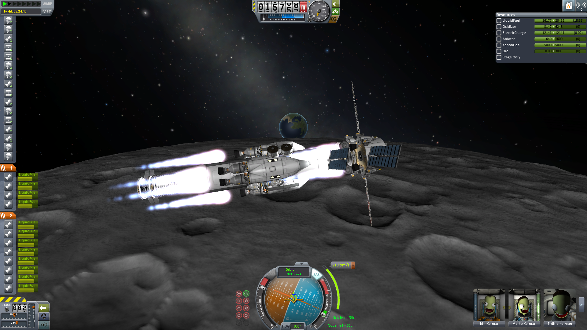 Mein Duna Tank wurde im LKO geparkt, danach befüllt und zuletzt mit einem zusätzlichen Treibstoffbehälter welcher den Sprit für den Transfer beinhaltete nach Duna geflogen.