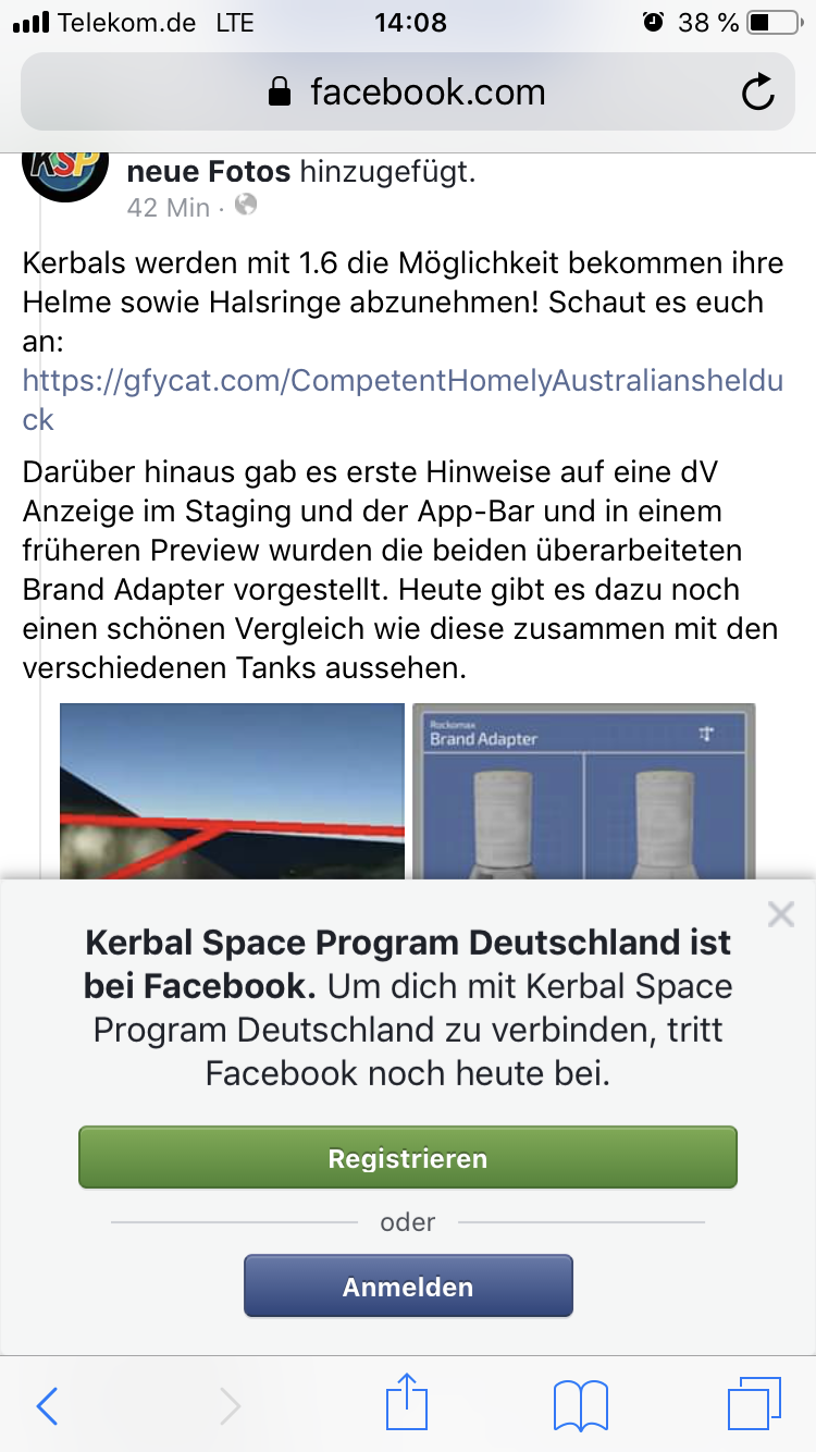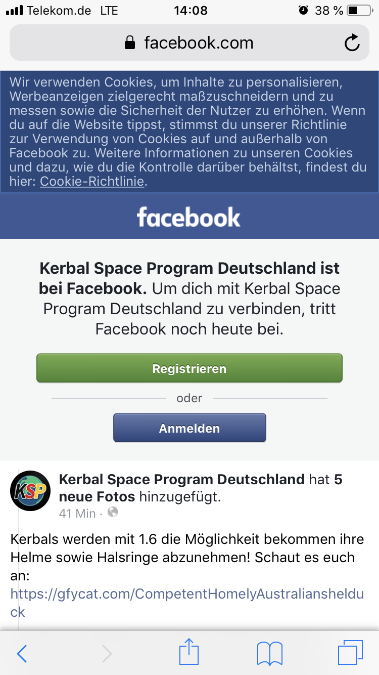Wie erwähnt, eher mein Problem das ich es unbequem finde mit‘m Handy von kerbal.de auf Facebook auf gfycat springen muss