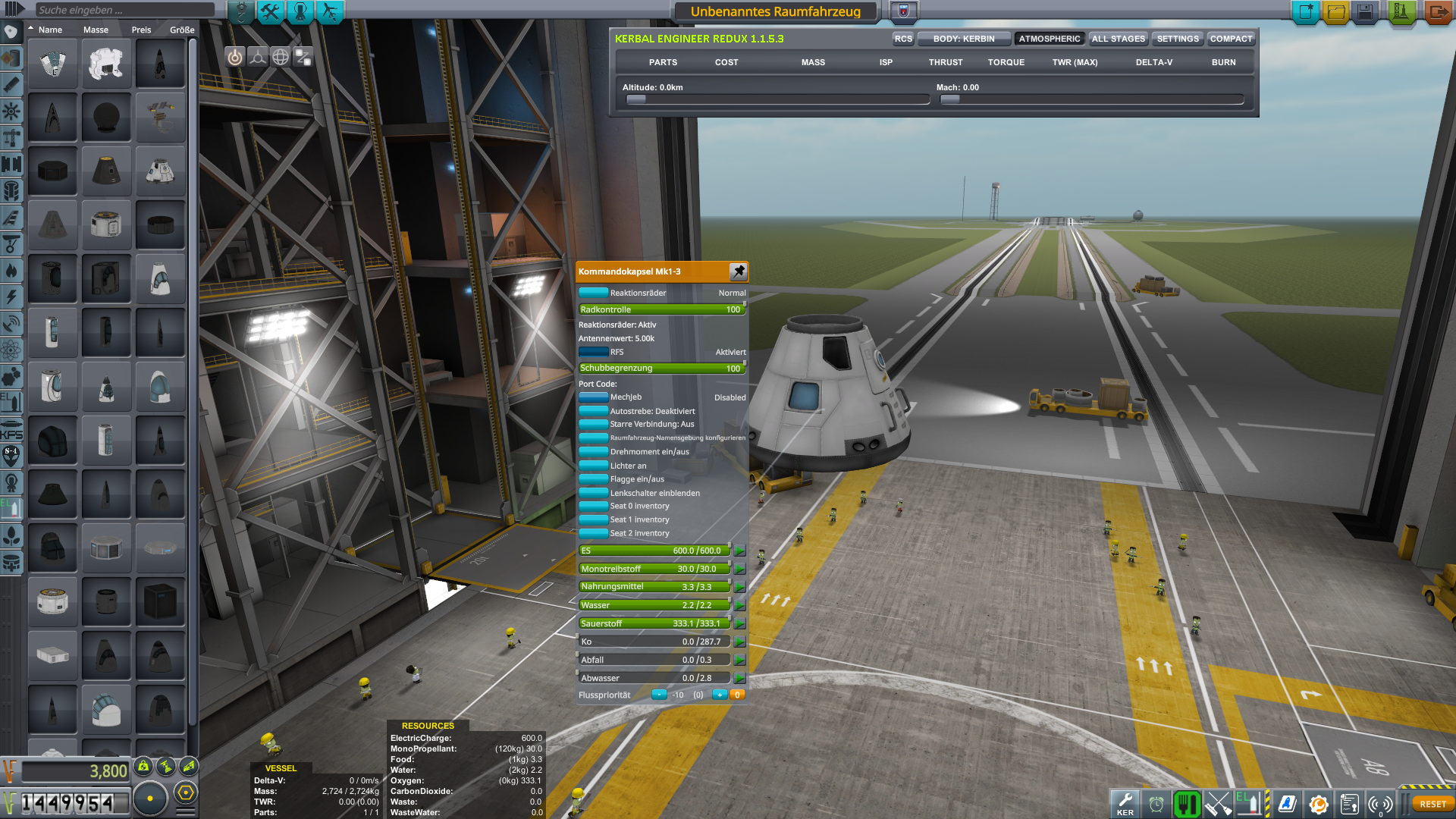 Im Science Tab findet man 2 Engineer Teile. Eines davon ans Raumfahrzeug pappen und fertig.