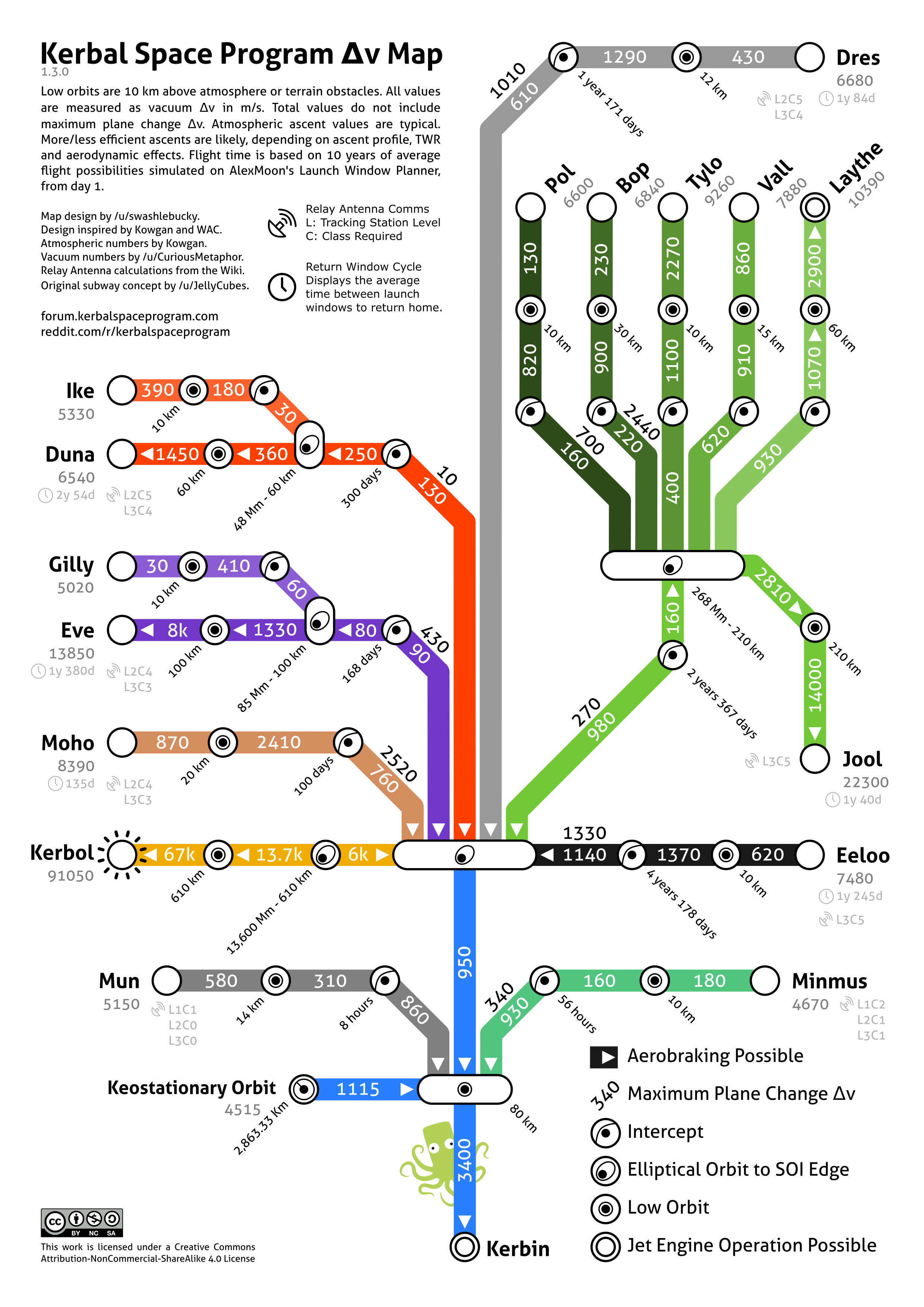 Eine tolle dV Map biete ich gleich mal hier an. Anhand dieser kann man seinen Trip von vorne bis hinten im VAB durchplanen.