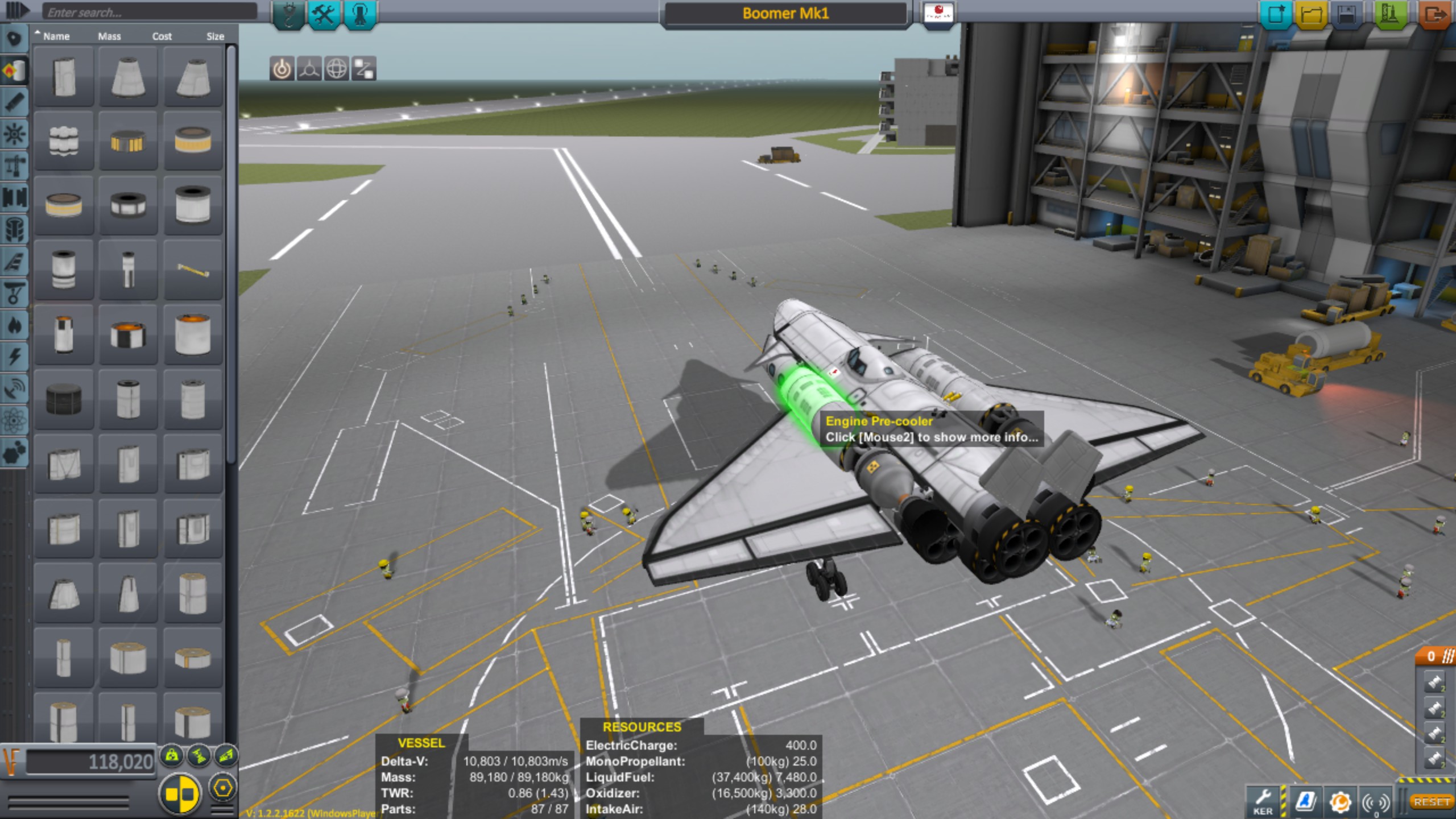 Der Boomer Mk1.craft ist ein SSTO. Er bietet Platz für 6 Personen und eine doppelte Mk2 Cargo-Bay Platz für... alles Mögliche.