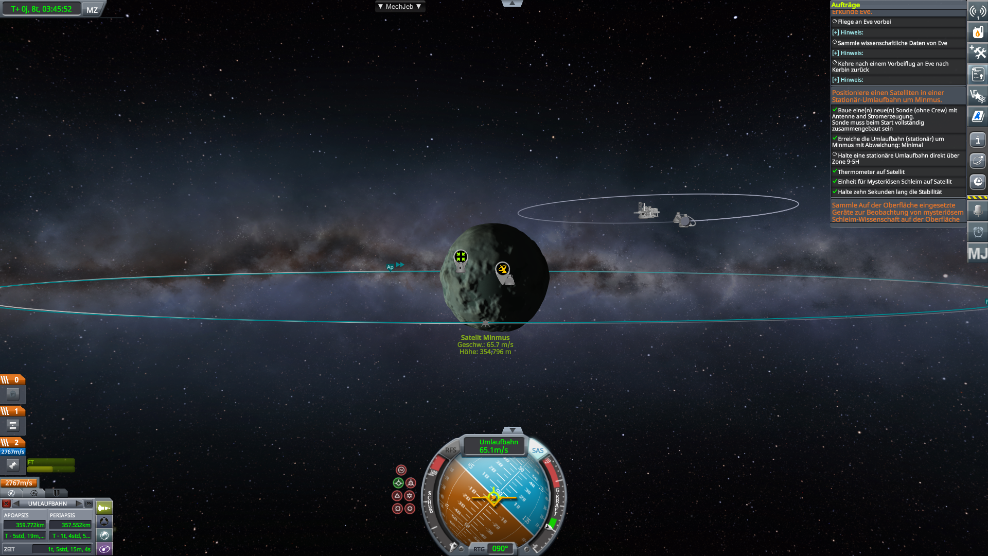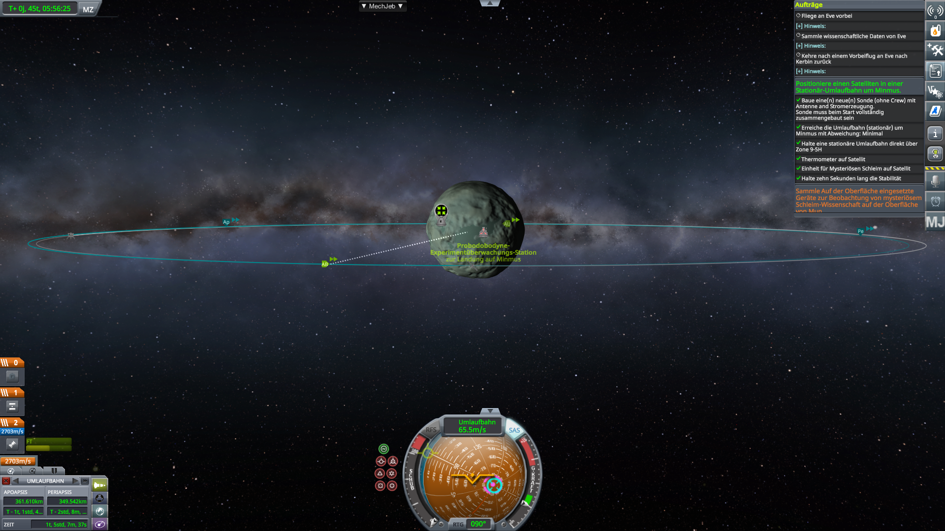 ist die Inklination auch wie gewünscht? Sind alle nötigen Teile dran? Manchmal gibt die Mission ja n bestimmtes Bauteil vor. Oder musst du evtl ne weile warten (6h o.ä.)