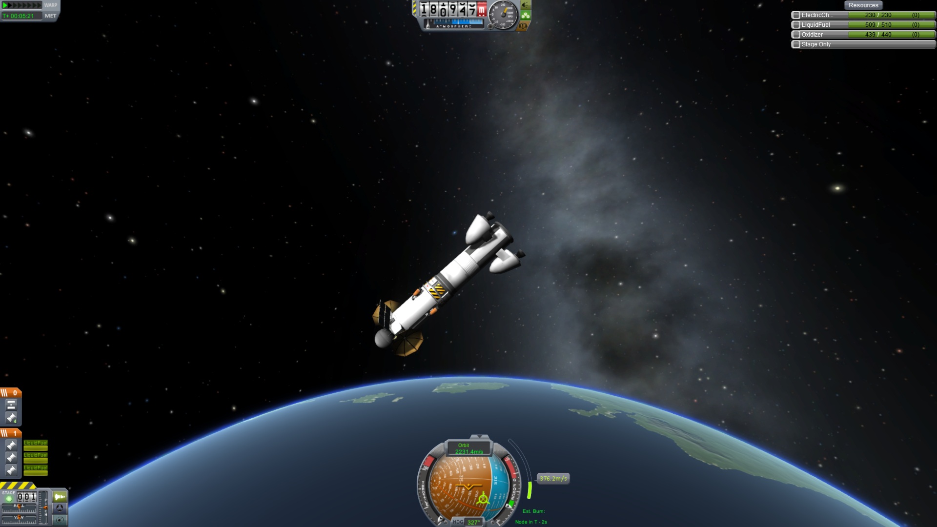 Somit sind noch ~800 Treibstoff der ersten Stufe und die komplette 2. und 3. Stufe im Orbit.