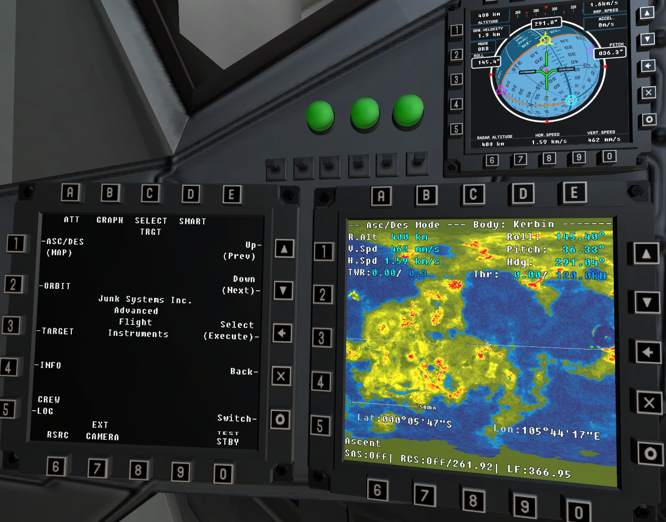 Schaut gleich viel besser aus. Das mit den Kameras ist auch eine super Idee. Auch kann man ja die Maps aus demSCAN sat Mod verwenden. Jetzt muss es nur noch MechJep vom Cockpit aus noch unterstützen.