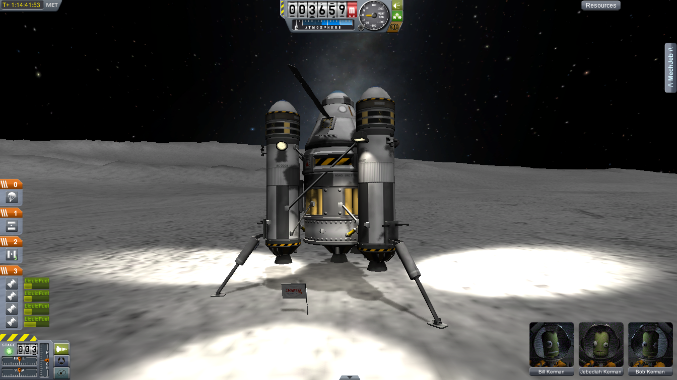 @Techdefined: Beim ersten Versuch habe ich ein Target per Mausklick gewählt. Hat funktioniert. Beim zweiten mal wollte ich an der gleichen Stelle erneut Landen. Also habe ich die Koordinaten eingegeben. Da hat Mechjeb 2 total versagt. Auf der Oberfläche zerschelt. Der dritte Versuch war dann das Land somewhere. Das war schopn fast witzig. Prograde und vollgas bis ich raus aus dem Munorbit war. Gestern habe ich es nochmal mit Taregt per Mausklick probiert. Gelandet bin ich. Allerdings 8km entfernt vom Target.