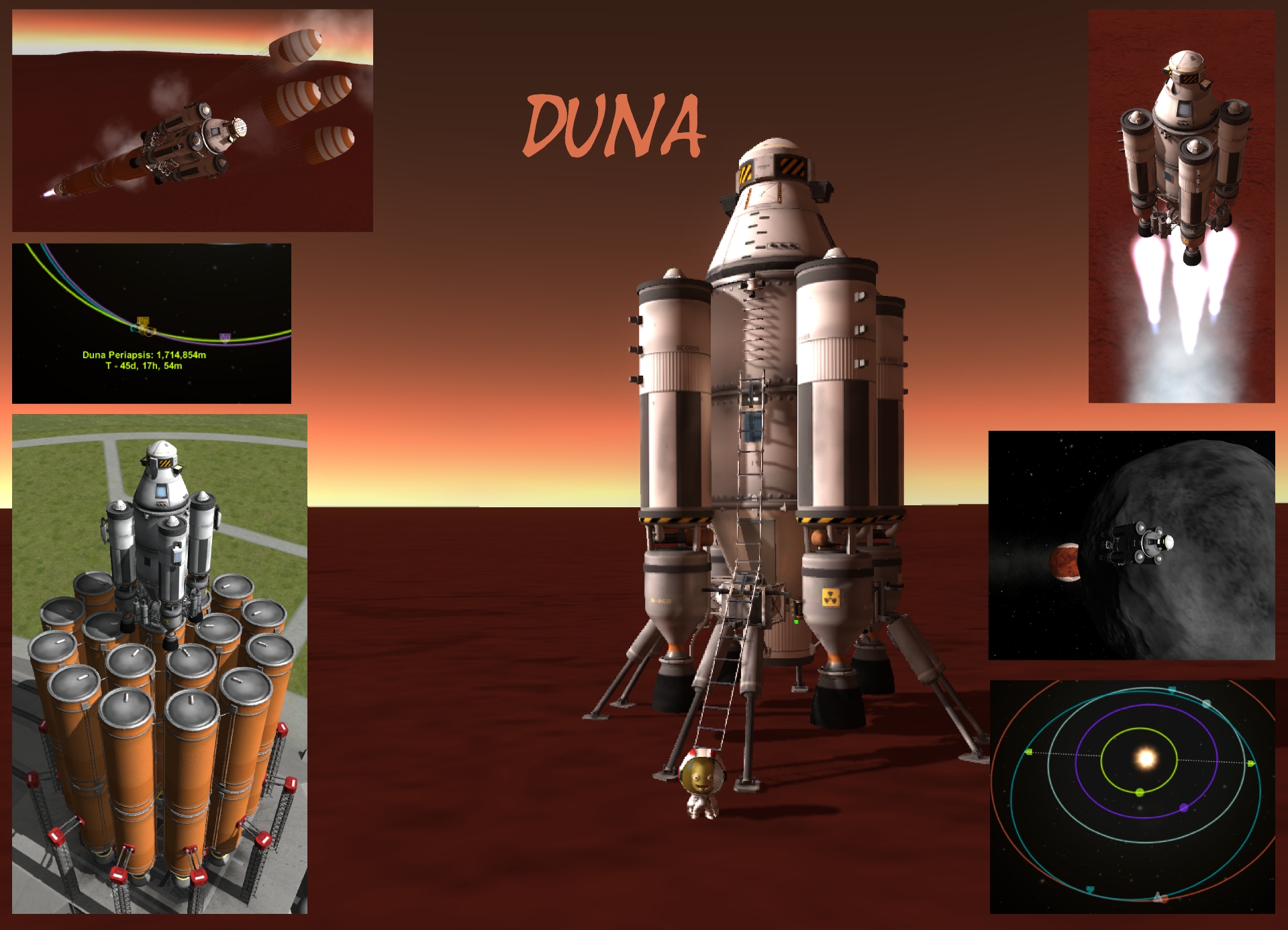 Der Lander ist fast derselbe wie zu der Mission "Die Perle", er fasst 2970 l Fuel, hat 4 Nuklear-Triebwerke, 2x4 Fallschirme und befördert einen 3-Mann-Pod durchs All! Die Mission hat 3 Jahre und 55 Tage gedauert, laut Tracking Station. Ich bin ebenfalls zuerst auf Duna gelandet, was keine große Schwierigkeit war. Mit einem Swing-By bei Ike ging es danach so lange weiter, bis der Sprit leer war und das war in einem bereits an Moho angepassten (Neigung) Orbit, zwischen Kerbin und Eve. Dort wurde das erste Mal nachgetankt. Mit diesem Sprit bin ich in einen ca. 100 Km Orbit um Moho gekommen, konnte Landen und mit dem letzten Tropfen und nur 2 Triebwerken zurück in einen 80 Km Orbit fliegen.
