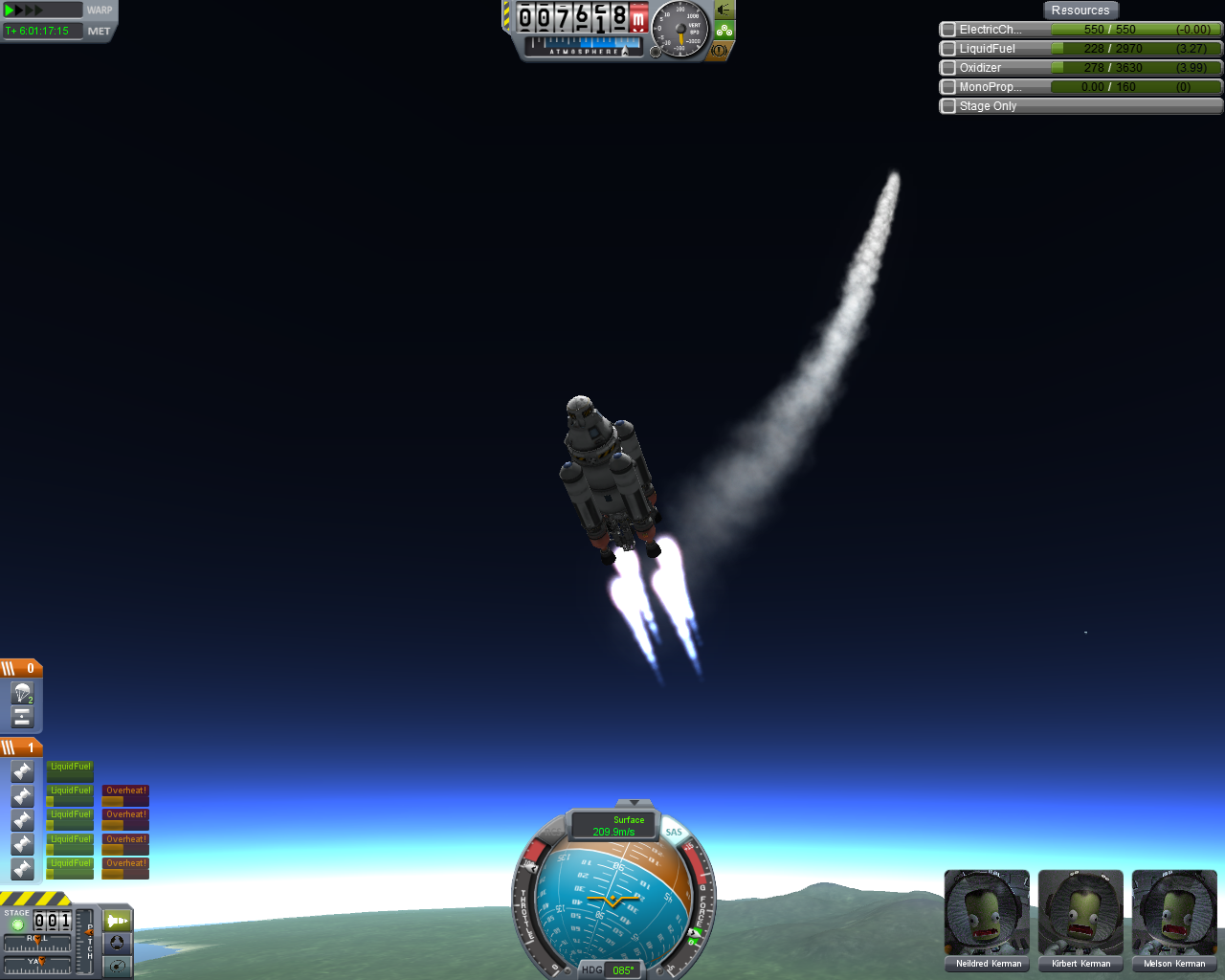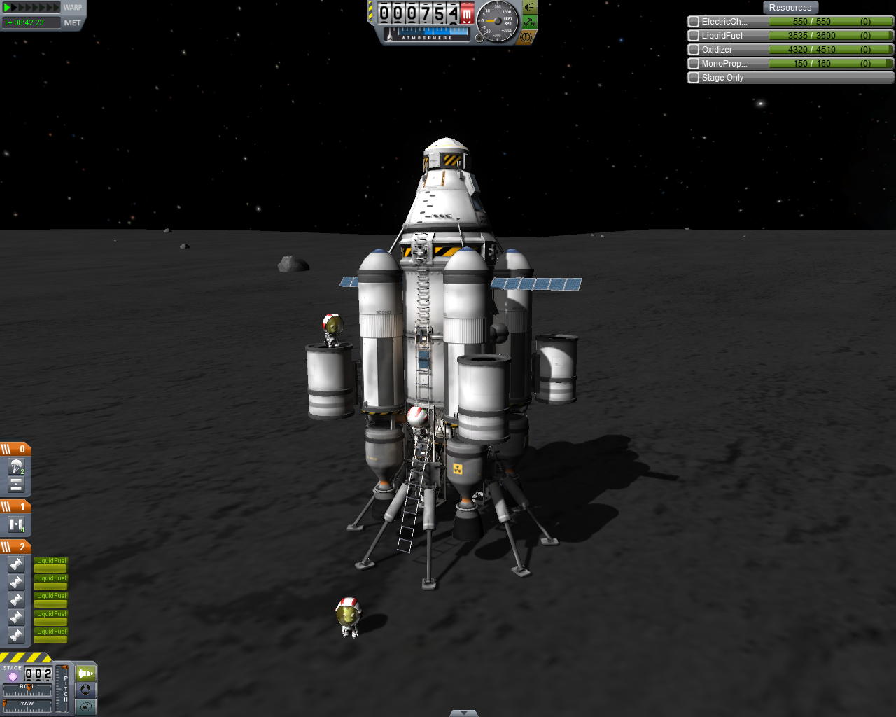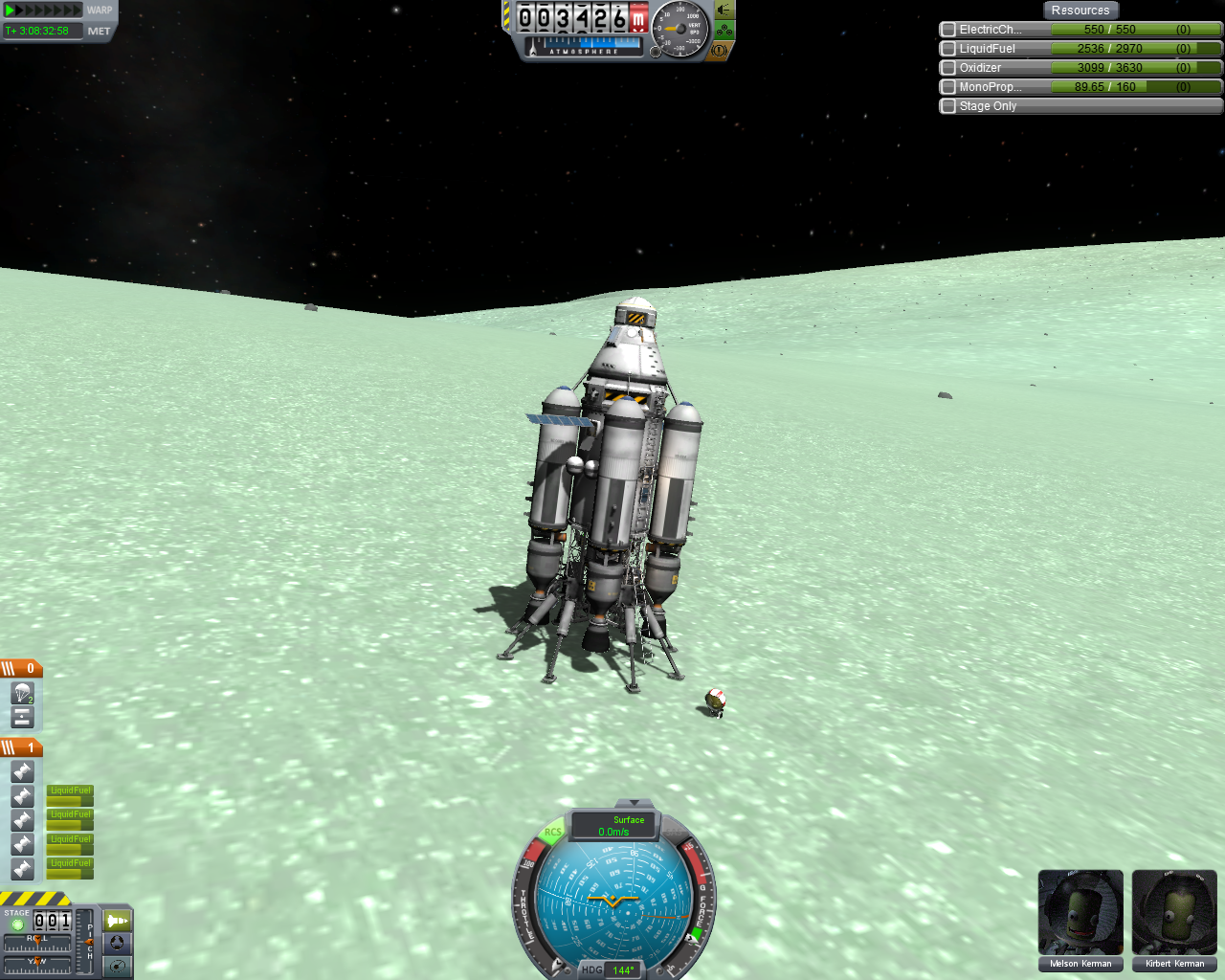 Performance mäßig hätte ich es mir viel schlimmer vorgestellt, es war aber für die Mission aushaltbar. Mit dem Teil habe ich wieder persönliche Rekorde gebrochen: Größtes Docking Schiff, meiste Module dafür, Gewicht und "Kerbal-Kleinstadt" ^^. -