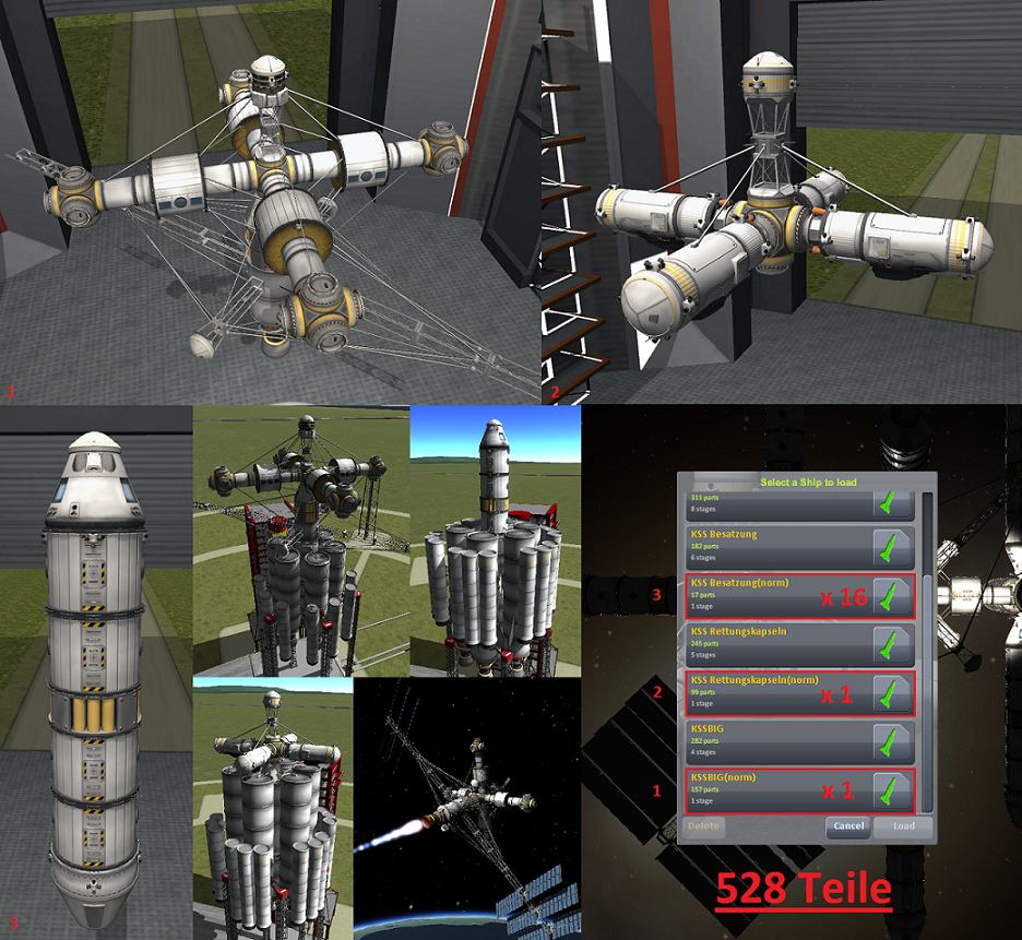 Sie besteht aus genau 528 Teilen, hat ein Gewicht von rund 460 Tonnen, hat Platz für 324 Kerbals und besteht aus 18 Modulen!Weil meine Apollo-Mission so schlecht war und ich keine Mega-Station bauen wollte, die nur aus Solarzellen besteht