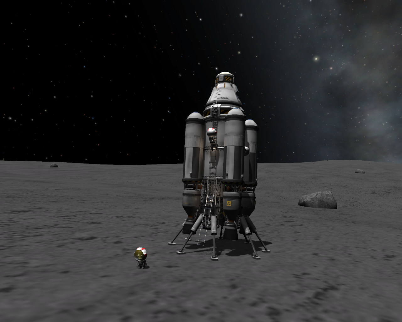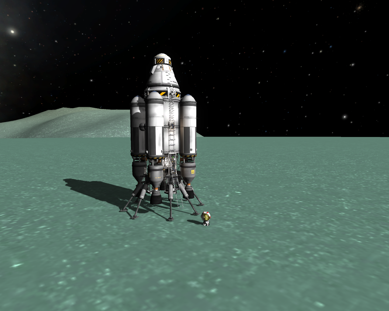 Mit etwas Übung gelangt es einem auch, wieder sicher zurück ins Flugzeug zu kommen und Anzudocken. Demnächst folgt noch ein Tanklaster für einen Langstrecken Flug und ein entsprechendes Silo, zur Errichtung einer entfernten Basis. Dieses Sachen werden allerdings vom VAB aus gestartet werden.